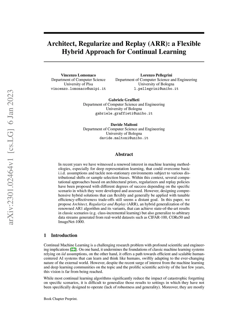 In recent years we have witnessed a renewed interest in machine learning methodologies, especially for deep representation learning, that could overcome basic i.i.d. assumptions and tackle non-stationary environments subject to various distributional shifts or sample selection biases. Within this context, several computational approaches based on architectural priors, regularizers and replay policies have been proposed with different degrees of success depending on the specific scenario in which they were developed and assessed. However, designing comprehensive hybrid solutions that can flexibly and generally be applied with tunable efficiency-effectiveness trade-offs still seems a distant goal. In this paper, we propose "Architect, Regularize and Replay" (ARR), an hybrid generalization of the renowned AR1 algorithm and its variants, that can achieve state-of-the-art results in classic scenarios (e.g. class-incremental learning) but also generalize to arbitrary data streams generated from real-world datasets such as CIFAR-100, CORe50 and ImageNet-1000.