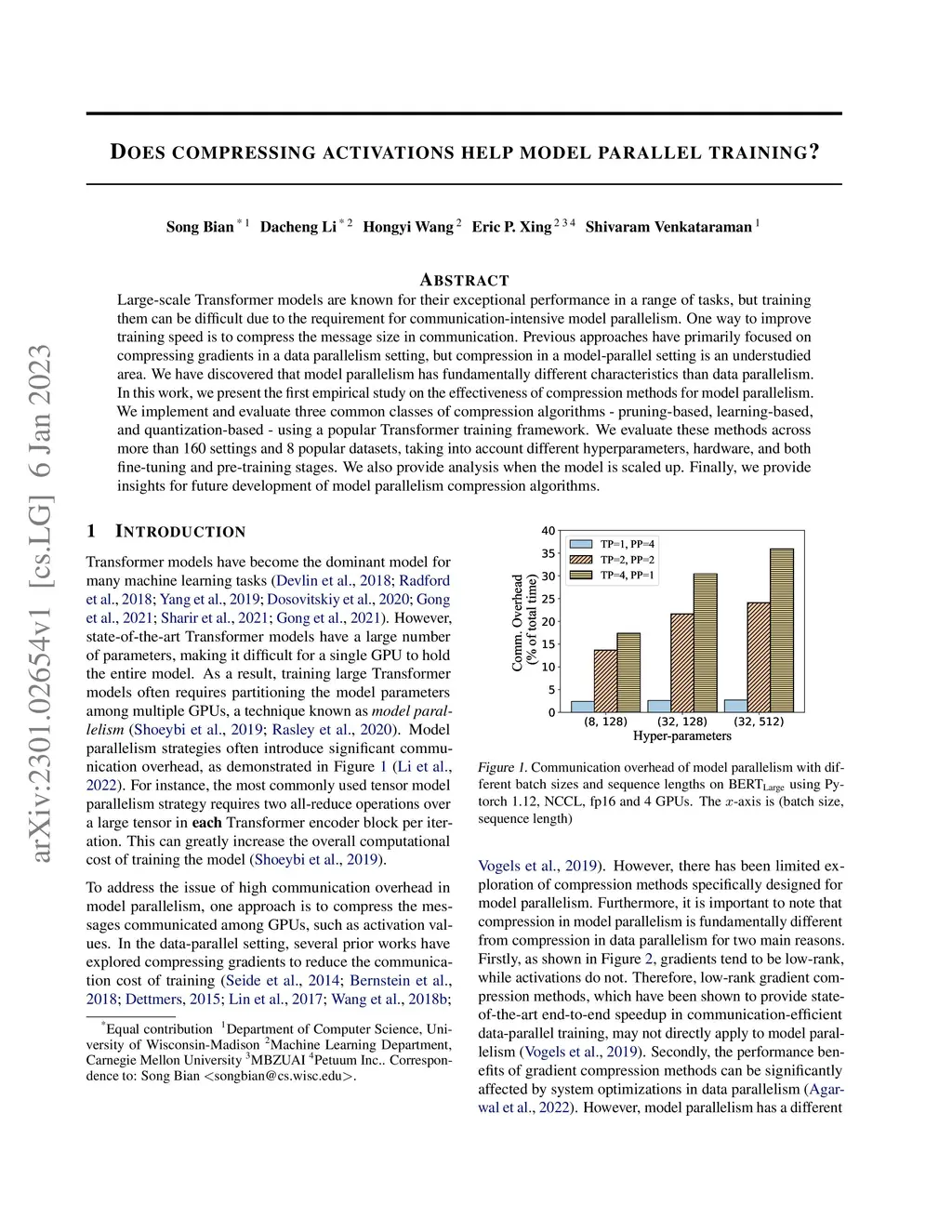 Does compressing activations help model parallel training?