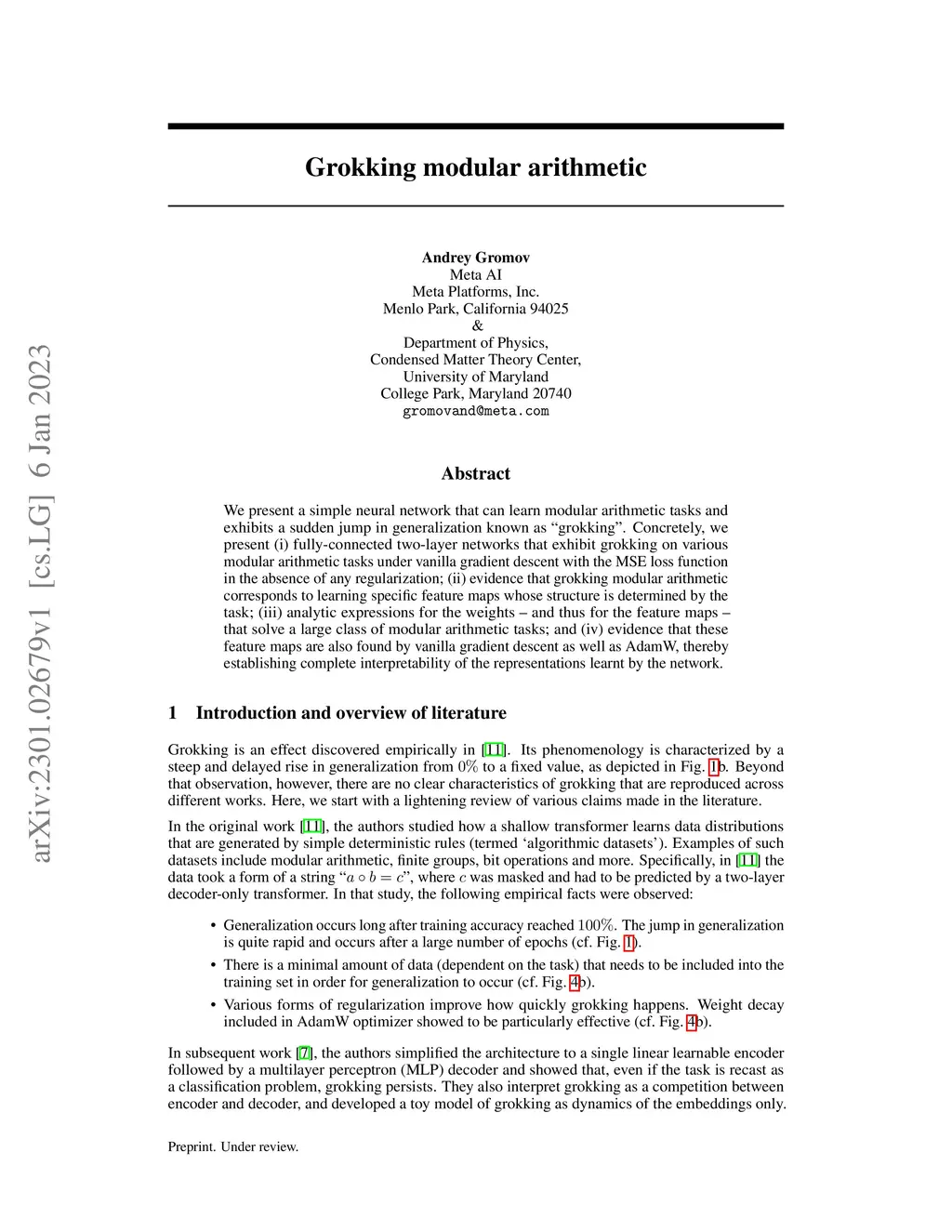 Grokking modular arithmetic