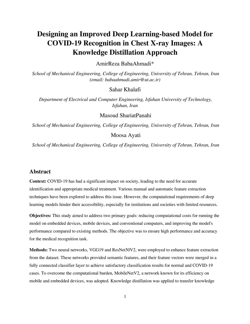 COVID-19 has adversely affected humans and societies in different aspects. Numerous people have perished due to inaccurate COVID-19 identification and, consequently, a lack of appropriate medical treatment. Numerous solutions based on manual and automatic feature extraction techniques have been investigated to address this issue by researchers worldwide. Typically, automatic feature extraction methods, particularly deep learning models, necessitate a powerful hardware system to perform the necessary computations. Unfortunately, many institutions and societies cannot benefit from these advancements due to the prohibitively high cost of high-quality hardware equipment. As a result, this study focused on two primary goals: first, lowering the computational costs associated with running the proposed model on embedded devices, mobile devices, and conventional computers; and second, improving the model's performance in comparison to previously published methods (at least performs on par with state-of-the-art models) in order to ensure its performance and accuracy for the medical recognition task. This study used two neural networks to improve feature extraction from our dataset: VGG19 and ResNet50V2. Both of these networks are capable of providing semantic features from the nominated dataset. To this end, An alternative network was considered, namely MobileNetV2, which excels at extracting semantic features while requiring minimal computation on mobile and embedded devices. Knowledge distillation (KD) was used to transfer knowledge from the teacher network (concatenated ResNet50V2 and VGG19) to the student network (MobileNetV2) to improve MobileNetV2 performance and to achieve a robust and accurate model for the COVID-19 identification task from chest X-ray images.
