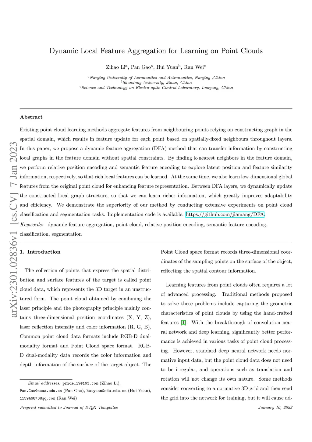 Dynamic Local Feature Aggregation for Learning on Point Clouds