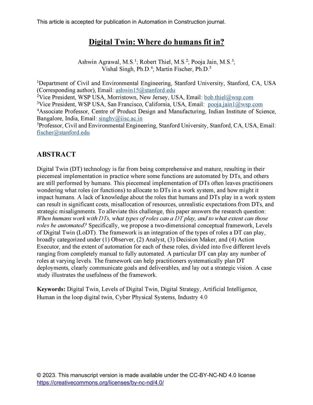 Digital Twin (DT) technology is far from being comprehensive and mature, resulting in their piecemeal implementation in practice where some functions are automated by DTs, and others are still performed by humans. This piecemeal implementation of DTs often leaves practitioners wondering what roles (or functions) to allocate to DTs in a work system, and how might it impact humans. A lack of knowledge about the roles that humans and DTs play in a work system can result in significant costs, misallocation of resources, unrealistic expectations from DTs, and strategic misalignments. To alleviate this challenge, this paper answers the research question: When humans work with DTs, what types of roles can a DT play, and to what extent can those roles be automated? Specifically, we propose a two-dimensional conceptual framework, Levels of Digital Twin (LoDT). The framework is an integration of the types of roles a DT can play, broadly categorized under (1) Observer, (2) Analyst, (3) Decision Maker, and (4) Action Executor, and the extent of automation for each of these roles, divided into five different levels ranging from completely manual to fully automated. A particular DT can play any number of roles at varying levels. The framework can help practitioners systematically plan DT deployments, clearly communicate goals and deliverables, and lay out a strategic vision. A case study illustrates the usefulness of the framework.