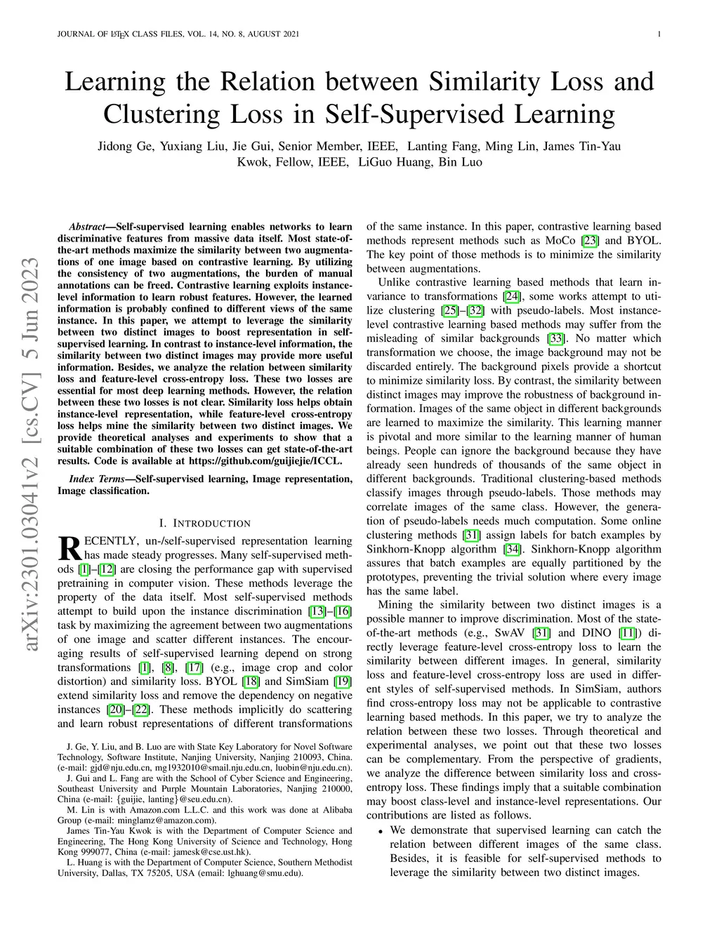 Learning the Relation between Similarity Loss and Clustering Loss in