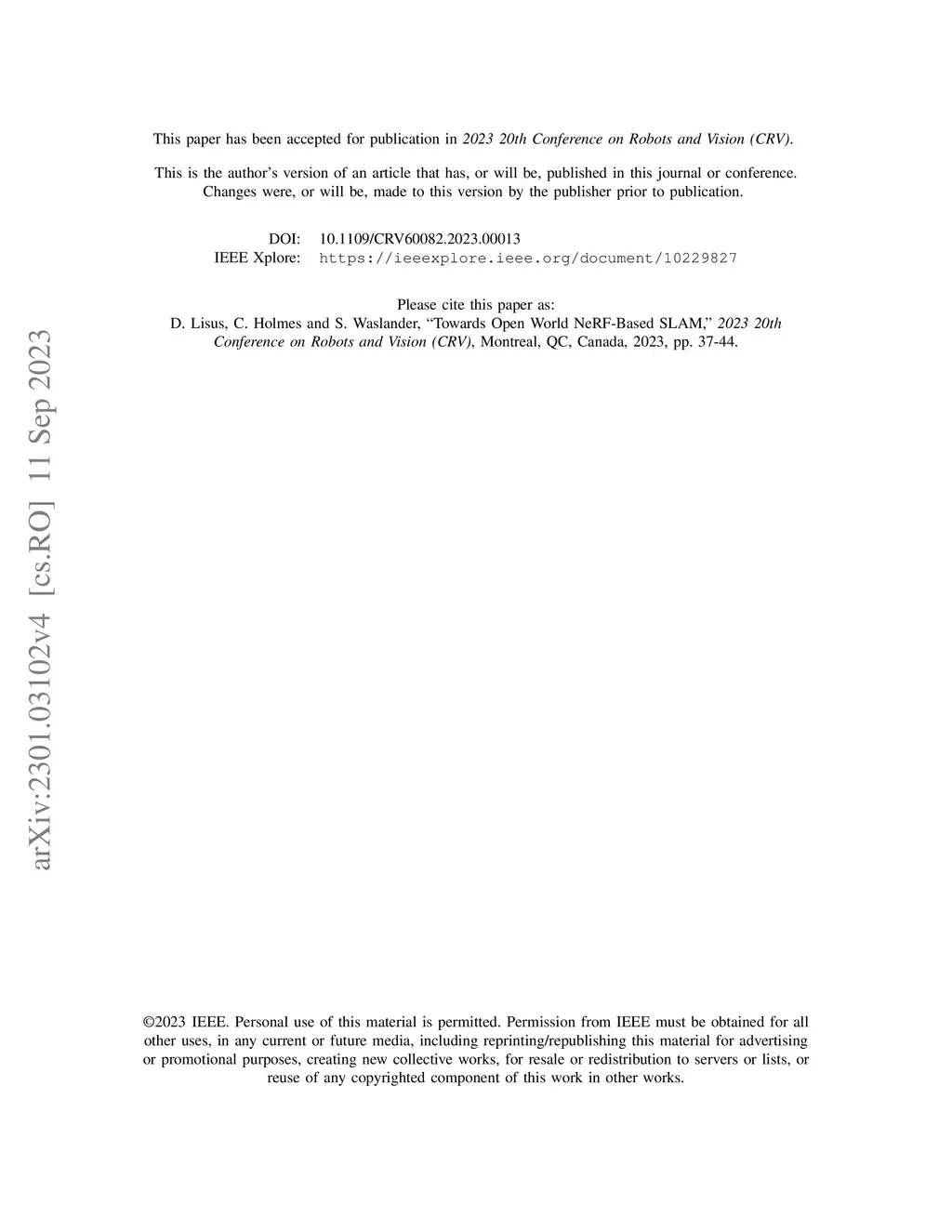 Towards Open World NeRF-Based SLAM