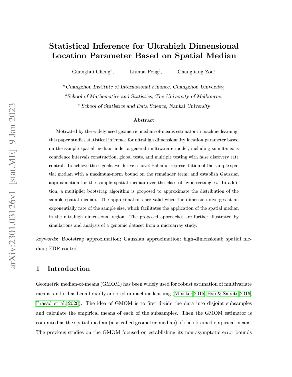 Motivated by the widely used geometric median-of-means estimator in machine learning, this paper studies statistical inference for ultrahigh dimensionality location parameter based on the sample spatial median under a general multivariate model, including simultaneous confidence intervals construction, global tests, and multiple testing with false discovery rate control. To achieve these goals, we derive a novel Bahadur representation of the sample spatial median with a maximum-norm bound on the remainder term, and establish Gaussian approximation for the sample spatial median over the class of hyperrectangles. In addition, a multiplier bootstrap algorithm is proposed to approximate the distribution of the sample spatial median. The approximations are valid when the dimension diverges at an exponentially rate of the sample size, which facilitates the application of the spatial median in the ultrahigh dimensional region. The proposed approaches are further illustrated by simulations and analysis of a genomic dataset from a microarray study.