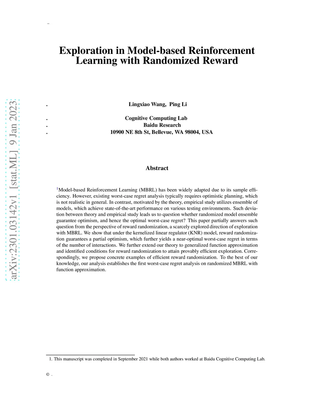 Exploration in Model-based Reinforcement Learning with Randomized Reward