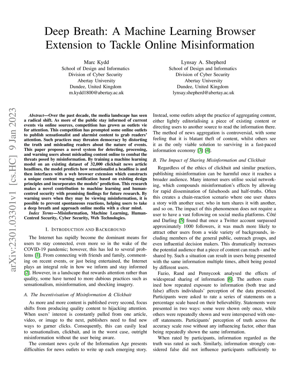Over the past decade, the media landscape has seen a radical shift. As more of the public stay informed of current events via online sources, competition has grown as outlets vie for attention. This competition has prompted some online outlets to publish sensationalist and alarmist content to grab readers' attention. Such practices may threaten democracy by distorting the truth and misleading readers about the nature of events. This paper proposes a novel system for detecting, processing, and warning users about misleading content online to combat the threats posed by misinformation. By training a machine learning model on an existing dataset of 32,000 clickbait news article headlines, the model predicts how sensationalist a headline is and then interfaces with a web browser extension which constructs a unique content warning notification based on existing design principles and incorporates the models' prediction. This research makes a novel contribution to machine learning and human-centred security with promising findings for future research. By warning users when they may be viewing misinformation, it is possible to prevent spontaneous reactions, helping users to take a deep breath and approach online media with a clear mind.