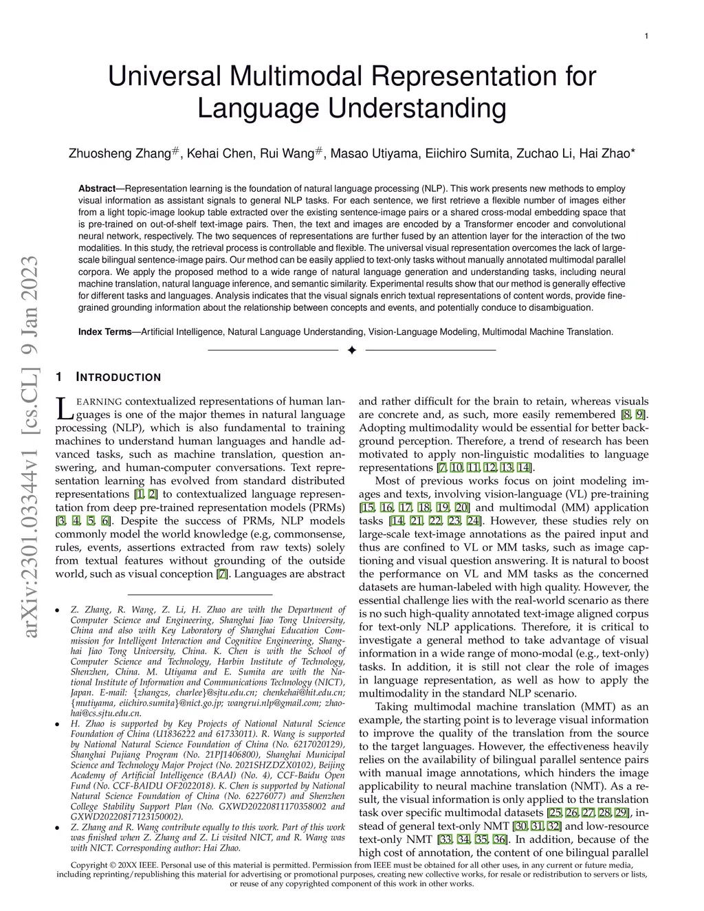Universal Multimodal Representation for Language Understanding