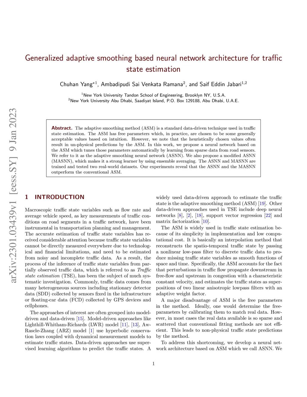 The adaptive smoothing method (ASM) is a standard data-driven technique used in traffic state estimation. The ASM has free parameters which, in practice, are chosen to be some generally acceptable values based on intuition. However, we note that the heuristically chosen values often result in un-physical predictions by the ASM. In this work, we propose a neural network based on the ASM which tunes those parameters automatically by learning from sparse data from road sensors. We refer to it as the adaptive smoothing neural network (ASNN). We also propose a modified ASNN (MASNN), which makes it a strong learner by using ensemble averaging. The ASNN and MASNN are trained and tested two real-world datasets. Our experiments reveal that the ASNN and the MASNN outperform the conventional ASM.
