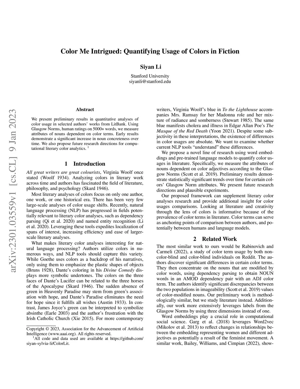 Color Me Intrigued: Quantifying Usage of Colors in Fiction