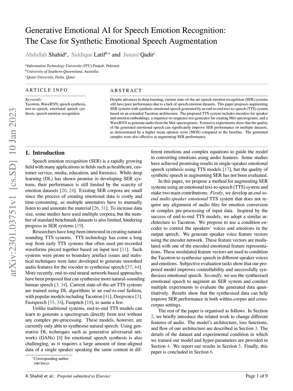 Generative Emotional AI for Speech Emotion Recognition: The Case for