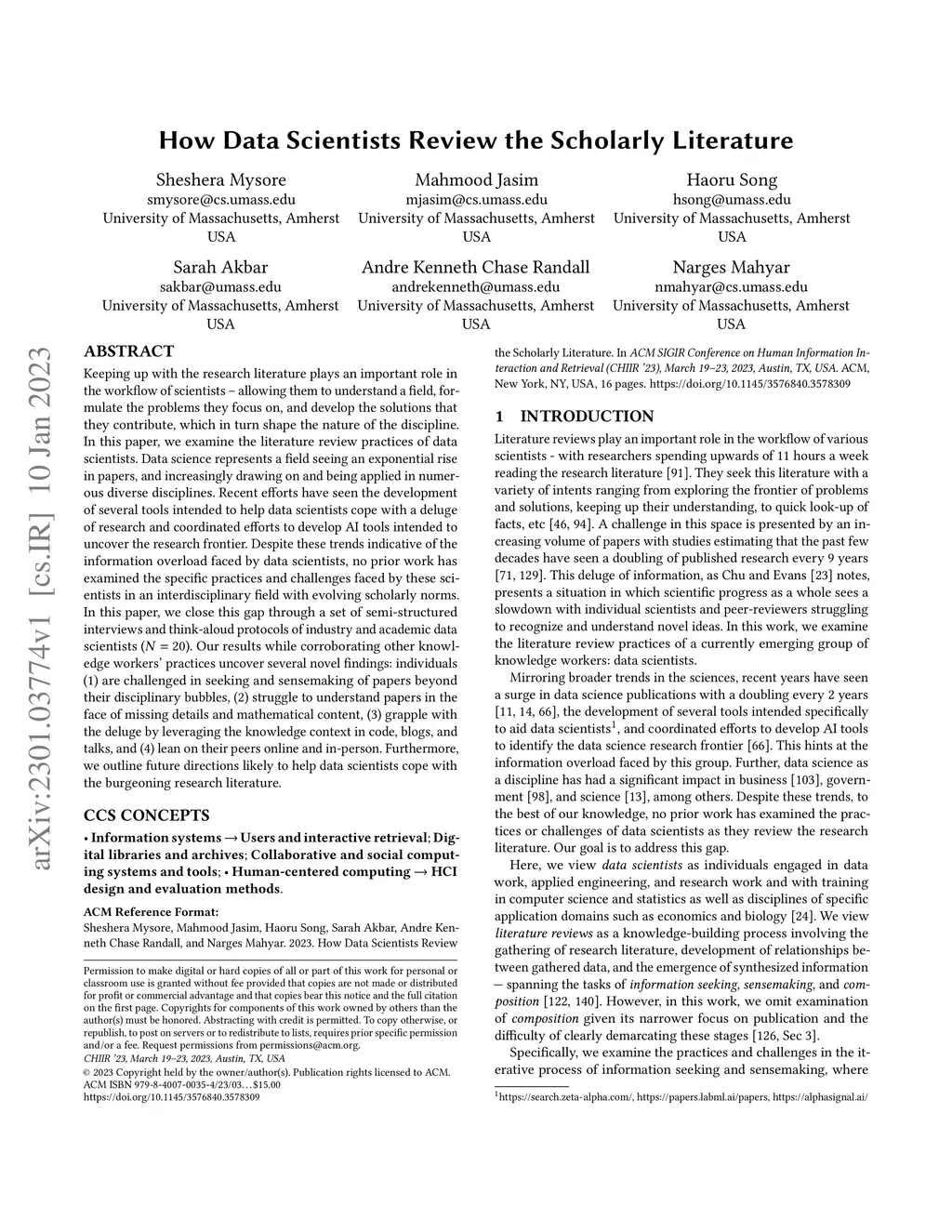 Keeping up with the research literature plays an important role in the workflow of scientists - allowing them to understand a field, formulate the problems they focus on, and develop the solutions that they contribute, which in turn shape the nature of the discipline. In this paper, we examine the literature review practices of data scientists. Data science represents a field seeing an exponential rise in papers, and increasingly drawing on and being applied in numerous diverse disciplines. Recent efforts have seen the development of several tools intended to help data scientists cope with a deluge of research and coordinated efforts to develop AI tools intended to uncover the research frontier. Despite these trends indicative of the information overload faced by data scientists, no prior work has examined the specific practices and challenges faced by these scientists in an interdisciplinary field with evolving scholarly norms. In this paper, we close this gap through a set of semi-structured interviews and think-aloud protocols of industry and academic data scientists (N = 20). Our results while corroborating other knowledge workers' practices uncover several novel findings: individuals (1) are challenged in seeking and sensemaking of papers beyond their disciplinary bubbles, (2) struggle to understand papers in the face of missing details and mathematical content, (3) grapple with the deluge by leveraging the knowledge context in code, blogs, and talks, and (4) lean on their peers online and in-person. Furthermore, we outline future directions likely to help data scientists cope with the burgeoning research literature.