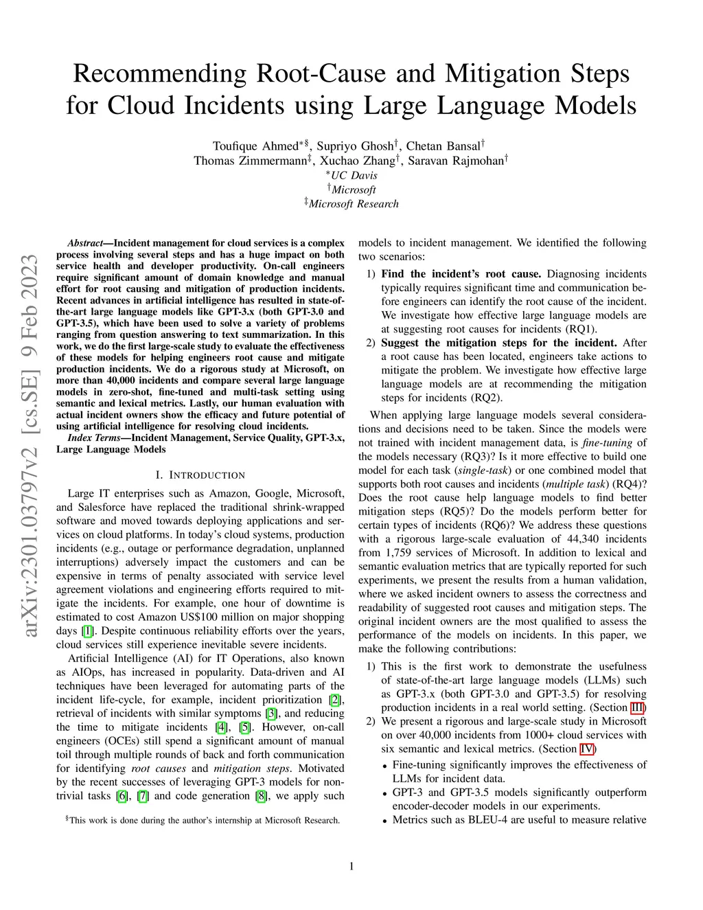 Recommending Root-Cause and Mitigation Steps for Cloud Incidents using