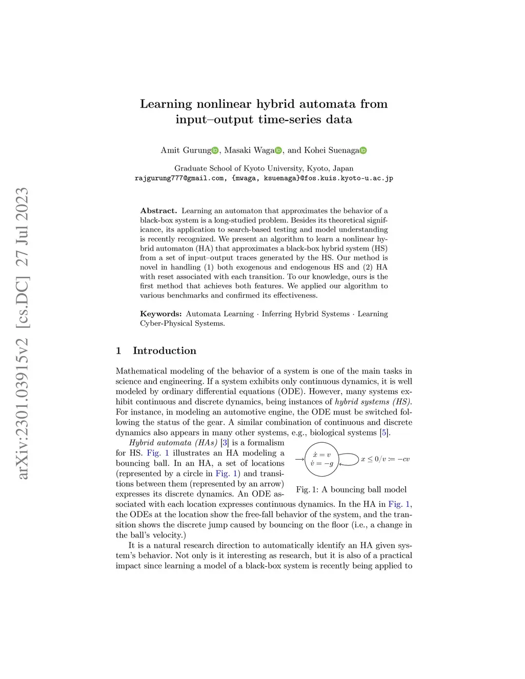 Learning nonlinear hybrid automata from input--output time-series data