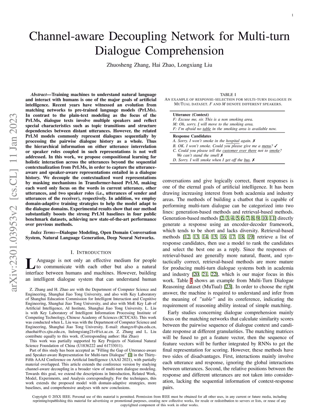 Channel-aware Decoupling Network for Multi-turn Dialogue Comprehension