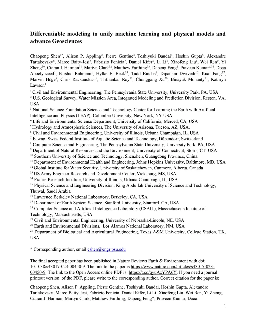 Process-Based Modeling (PBM) and Machine Learning (ML) are often perceived as distinct paradigms in the geosciences. Here we present differentiable geoscientific modeling as a powerful pathway toward dissolving the perceived barrier between them and ushering in a paradigm shift. For decades, PBM offered benefits in interpretability and physical consistency but struggled to efficiently leverage large datasets. ML methods, especially deep networks, presented strong predictive skills yet lacked the ability to answer specific scientific questions. While various methods have been proposed for ML-physics integration, an important underlying theme -- differentiable modeling -- is not sufficiently recognized. Here we outline the concepts, applicability, and significance of differentiable geoscientific modeling (DG). "Differentiable" refers to accurately and efficiently calculating gradients with respect to model variables, critically enabling the learning of high-dimensional unknown relationships. DG refers to a range of methods connecting varying amounts of prior knowledge to neural networks and training them together, capturing a different scope than physics-guided machine learning and emphasizing first principles. Preliminary evidence suggests DG offers better interpretability and causality than ML, improved generalizability and extrapolation capability, and strong potential for knowledge discovery, while approaching the performance of purely data-driven ML. DG models require less training data while scaling favorably in performance and efficiency with increasing amounts of data. With DG, geoscientists may be better able to frame and investigate questions, test hypotheses, and discover unrecognized linkages.