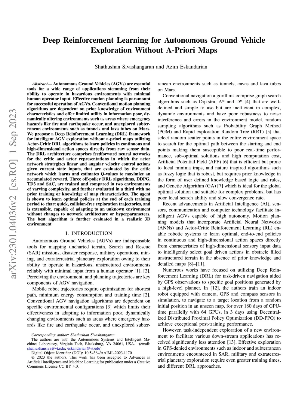 Deep Reinforcement Learning for Autonomous Ground Vehicle Exploration