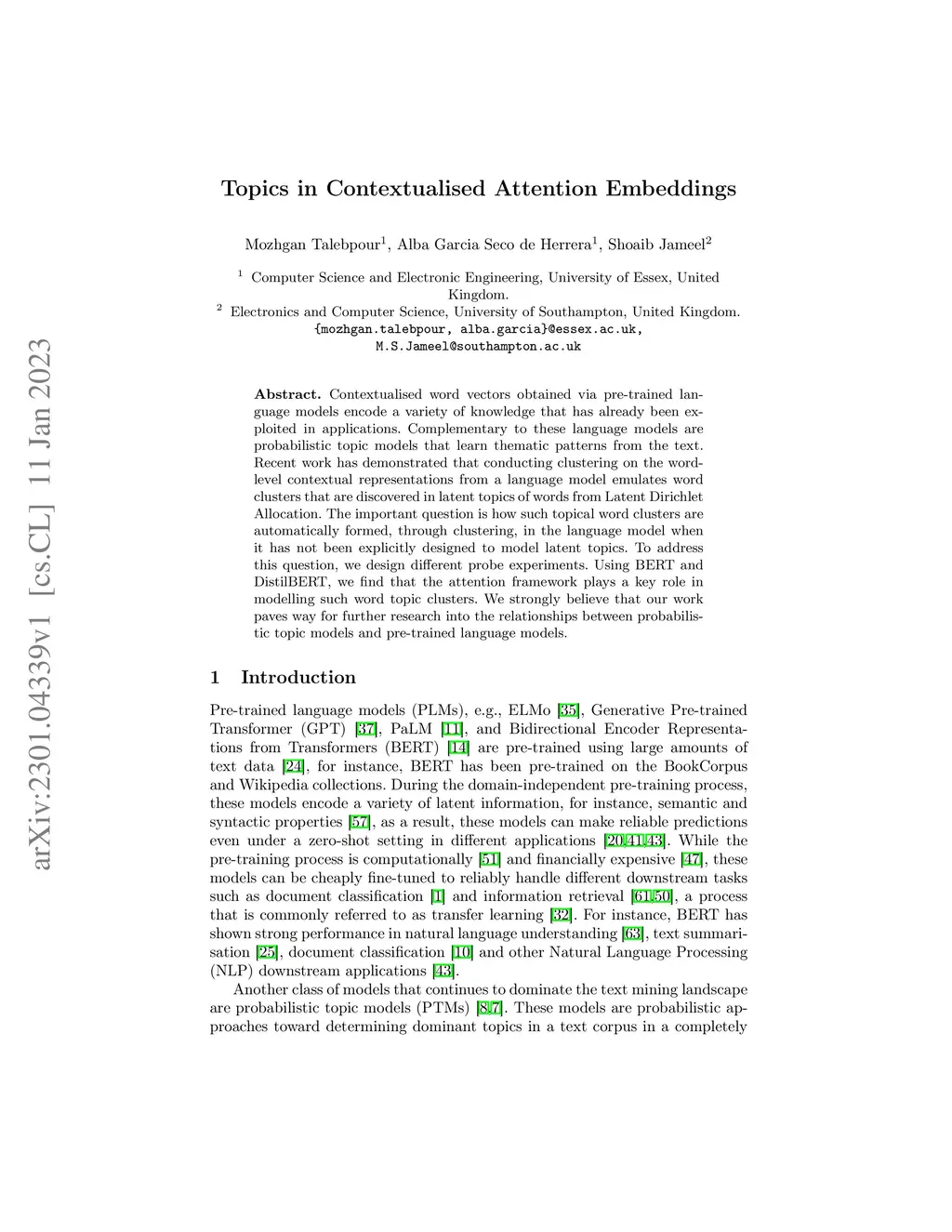 Contextualised word vectors obtained via pre-trained language models encode a variety of knowledge that has already been exploited in applications. Complementary to these language models are probabilistic topic models that learn thematic patterns from the text. Recent work has demonstrated that conducting clustering on the word-level contextual representations from a language model emulates word clusters that are discovered in latent topics of words from Latent Dirichlet Allocation. The important question is how such topical word clusters are automatically formed, through clustering, in the language model when it has not been explicitly designed to model latent topics. To address this question, we design different probe experiments. Using BERT and DistilBERT, we find that the attention framework plays a key role in modelling such word topic clusters. We strongly believe that our work paves way for further research into the relationships between probabilistic topic models and pre-trained language models.