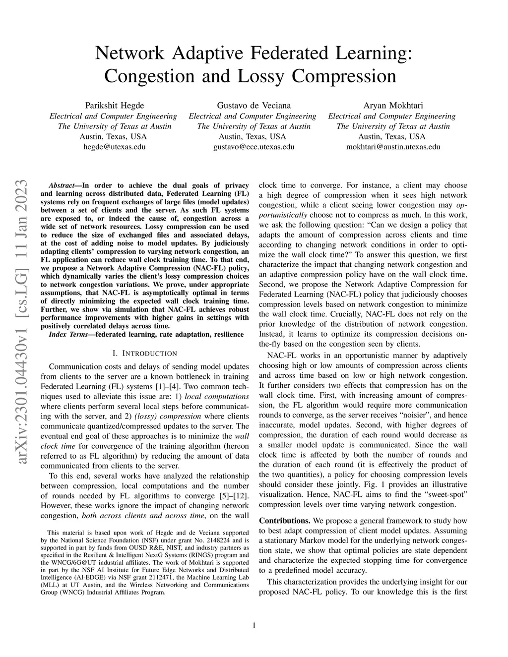 Network Adaptive Federated Learning: Congestion and Lossy Compression