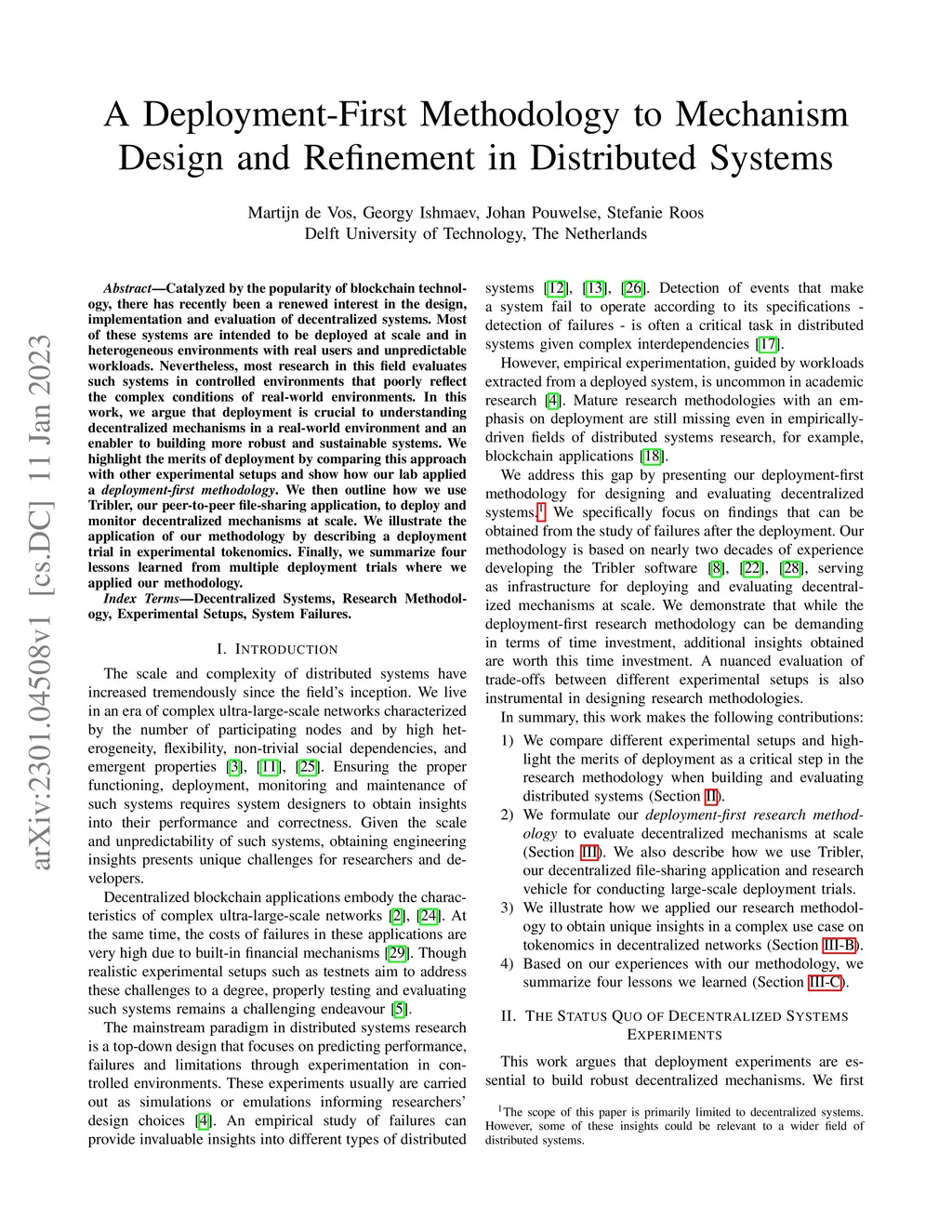 Catalyzed by the popularity of blockchain technology, there has recently been a renewed interest in the design, implementation and evaluation of decentralized systems. Most of these systems are intended to be deployed at scale and in heterogeneous environments with real users and unpredictable workloads. Nevertheless, most research in this field evaluates such systems in controlled environments that poorly reflect the complex conditions of real-world environments. In this work, we argue that deployment is crucial to understanding decentralized mechanisms in a real-world environment and an enabler to building more robust and sustainable systems. We highlight the merits of deployment by comparing this approach with other experimental setups and show how our lab applied a deployment-first methodology. We then outline how we use Tribler, our peer-to-peer file-sharing application, to deploy and monitor decentralized mechanisms at scale. We illustrate the application of our methodology by describing a deployment trial in experimental tokenomics. Finally, we summarize four lessons learned from multiple deployment trials where we applied our methodology.