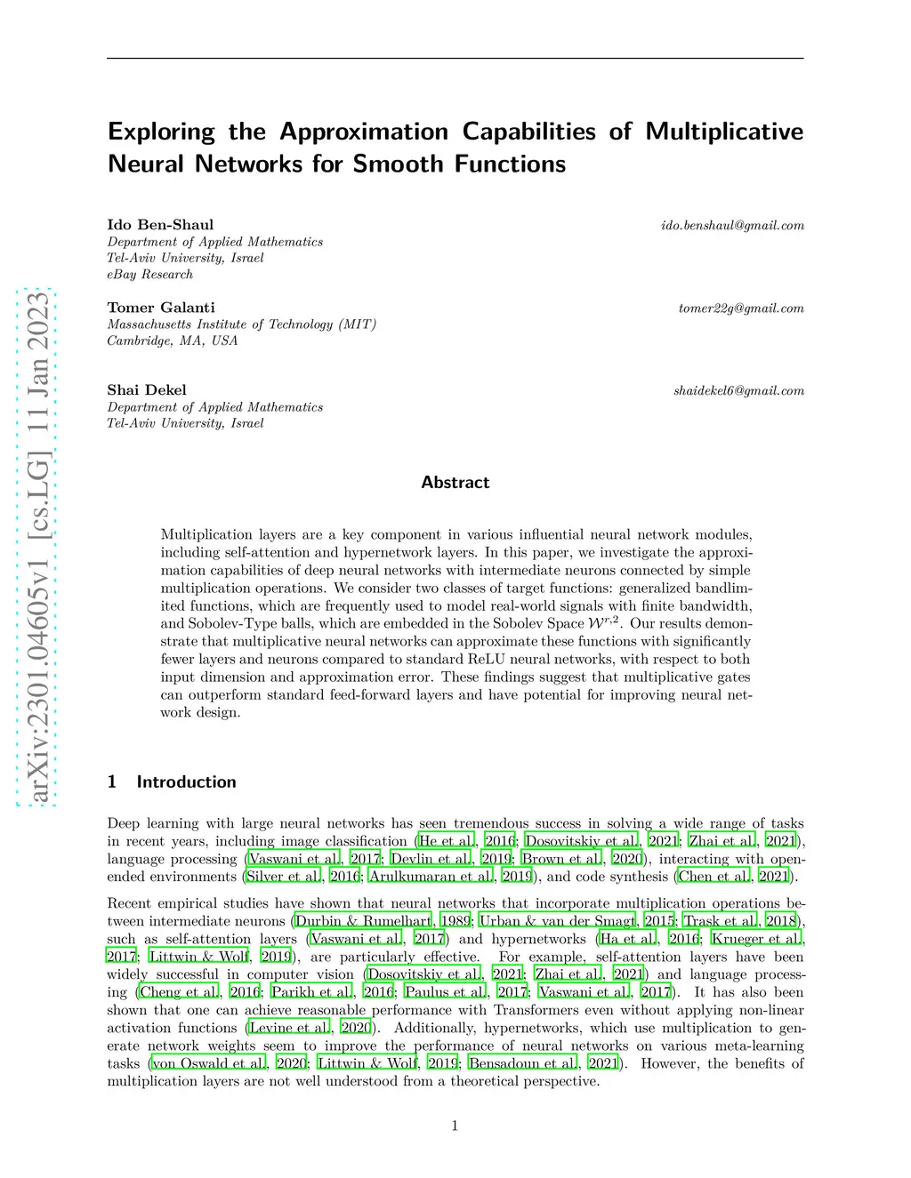 Multiplication layers are a key component in various influential neural network modules, including self-attention and hypernetwork layers. In this paper, we investigate the approximation capabilities of deep neural networks with intermediate neurons connected by simple multiplication operations. We consider two classes of target functions: generalized bandlimited functions, which are frequently used to model real-world signals with finite bandwidth, and Sobolev-Type balls, which are embedded in the Sobolev Space . Our results demonstrate that multiplicative neural networks can approximate these functions with significantly fewer layers and neurons compared to standard ReLU neural networks, with respect to both input dimension and approximation error. These findings suggest that multiplicative gates can outperform standard feed-forward layers and have potential for improving neural network design.