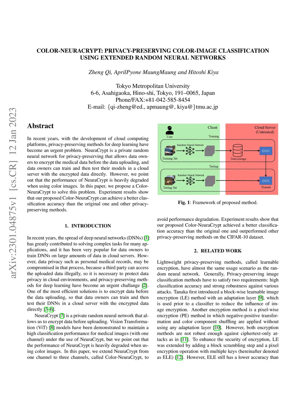 In recent years, with the development of cloud computing platforms, privacy-preserving methods for deep learning have become an urgent problem. NeuraCrypt is a private random neural network for privacy-preserving that allows data owners to encrypt the medical data before the data uploading, and data owners can train and then test their models in a cloud server with the encrypted data directly. However, we point out that the performance of NeuraCrypt is heavily degraded when using color images. In this paper, we propose a Color-NeuraCrypt to solve this problem. Experiment results show that our proposed Color-NeuraCrypt can achieve a better classification accuracy than the original one and other privacy-preserving methods.