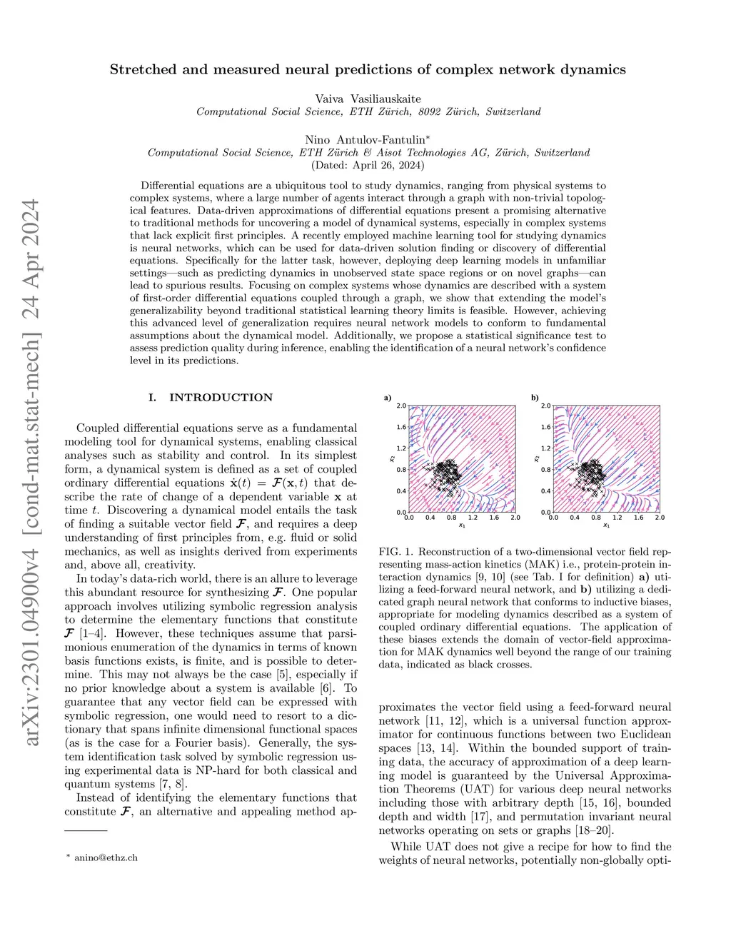 Differential equations are a ubiquitous tool to study dynamics, ranging from physical systems to complex systems, where a large number of agents interact through a graph with non-trivial topological features. Data-driven approximations of differential equations present a promising alternative to traditional methods for uncovering a model of dynamical systems, especially in complex systems that lack explicit first principles. A recently employed machine learning tool for studying dynamics is neural networks, which can be used for data-driven solution finding or discovery of differential equations. Specifically for the latter task, however, deploying deep learning models in unfamiliar settings - such as predicting dynamics in unobserved state space regions or on novel graphs - can lead to spurious results. Focusing on complex systems whose dynamics are described with a system of first-order differential equations coupled through a graph, we show that extending the model's generalizability beyond traditional statistical learning theory limits is feasible. However, achieving this advanced level of generalization requires neural network models to conform to fundamental assumptions about the dynamical model. Additionally, we propose a statistical significance test to assess prediction quality during inference, enabling the identification of a neural network's confidence level in its predictions.