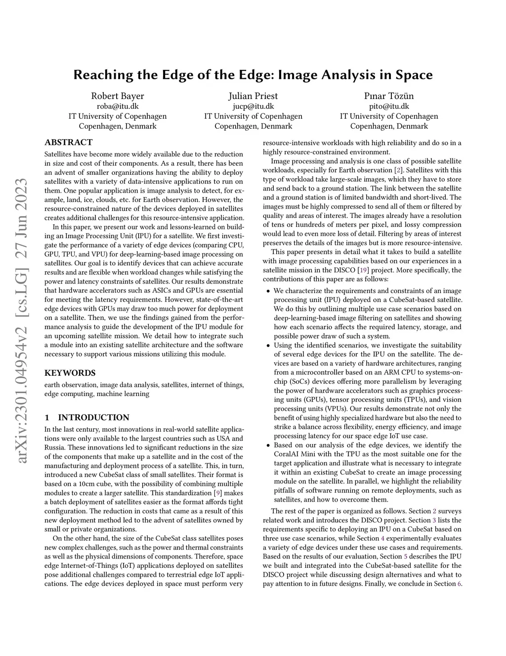 Reaching the Edge of the Edge: Image Analysis in Space
