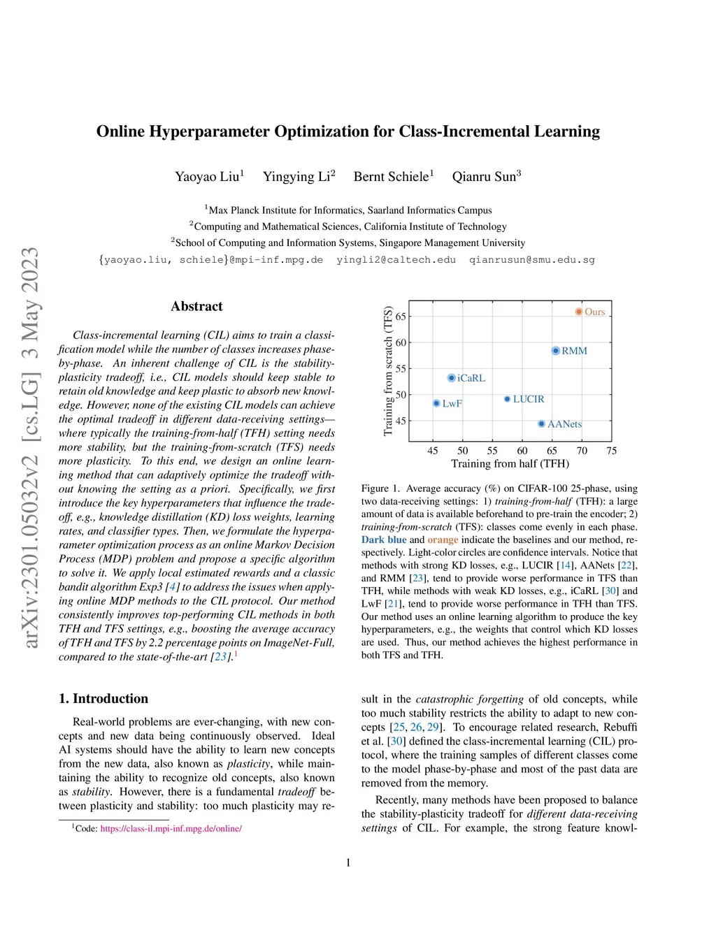 Online Hyperparameter Optimization for Class-Incremental Learning