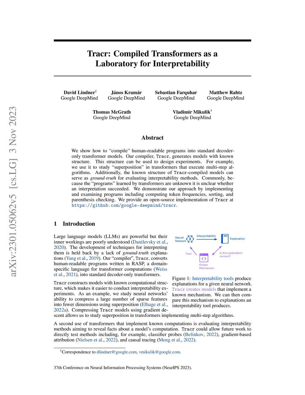 Tracr: Compiled Transformers as a Laboratory for Interpretability