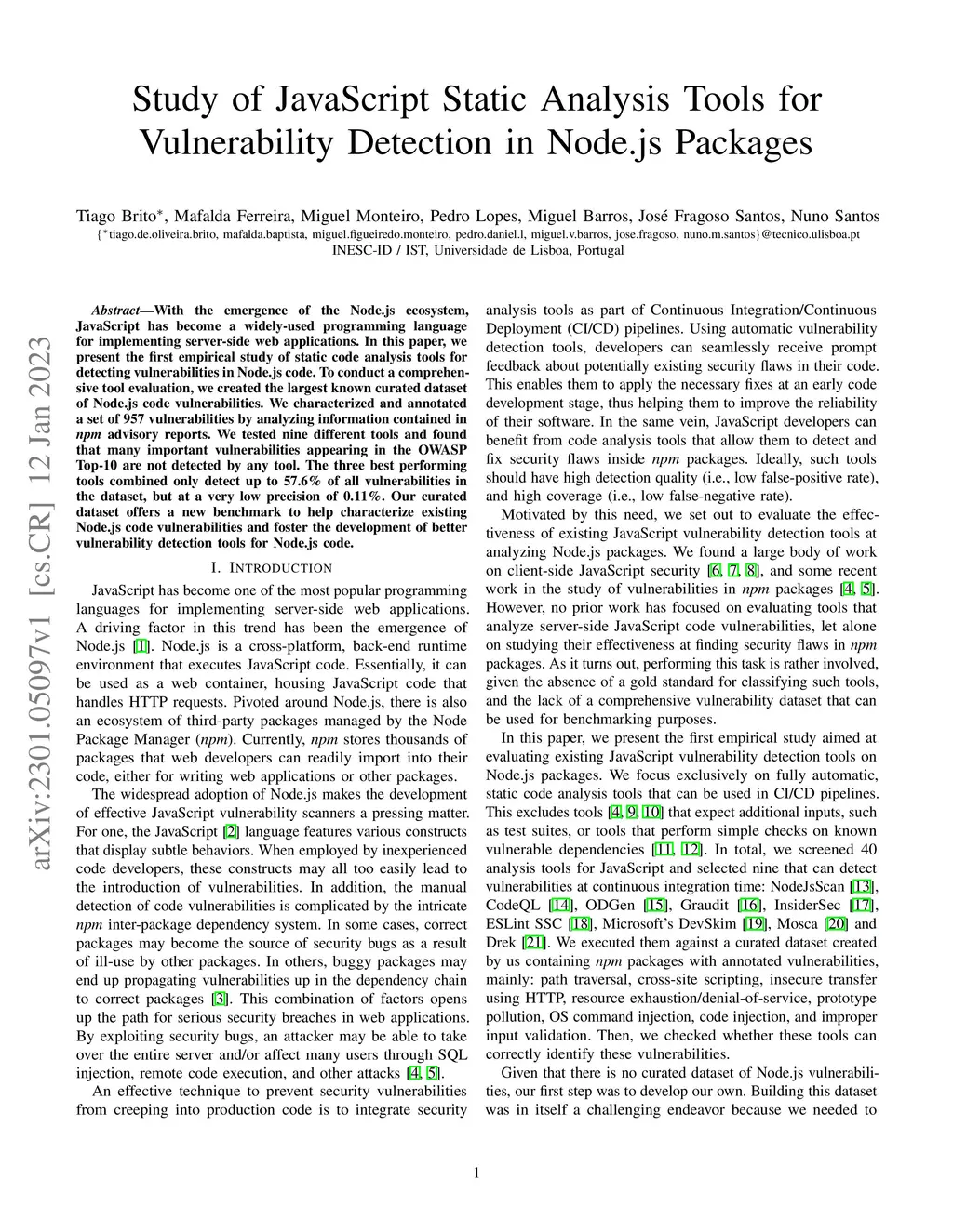 Study of JavaScript Static Analysis Tools for Vulnerability Detection in