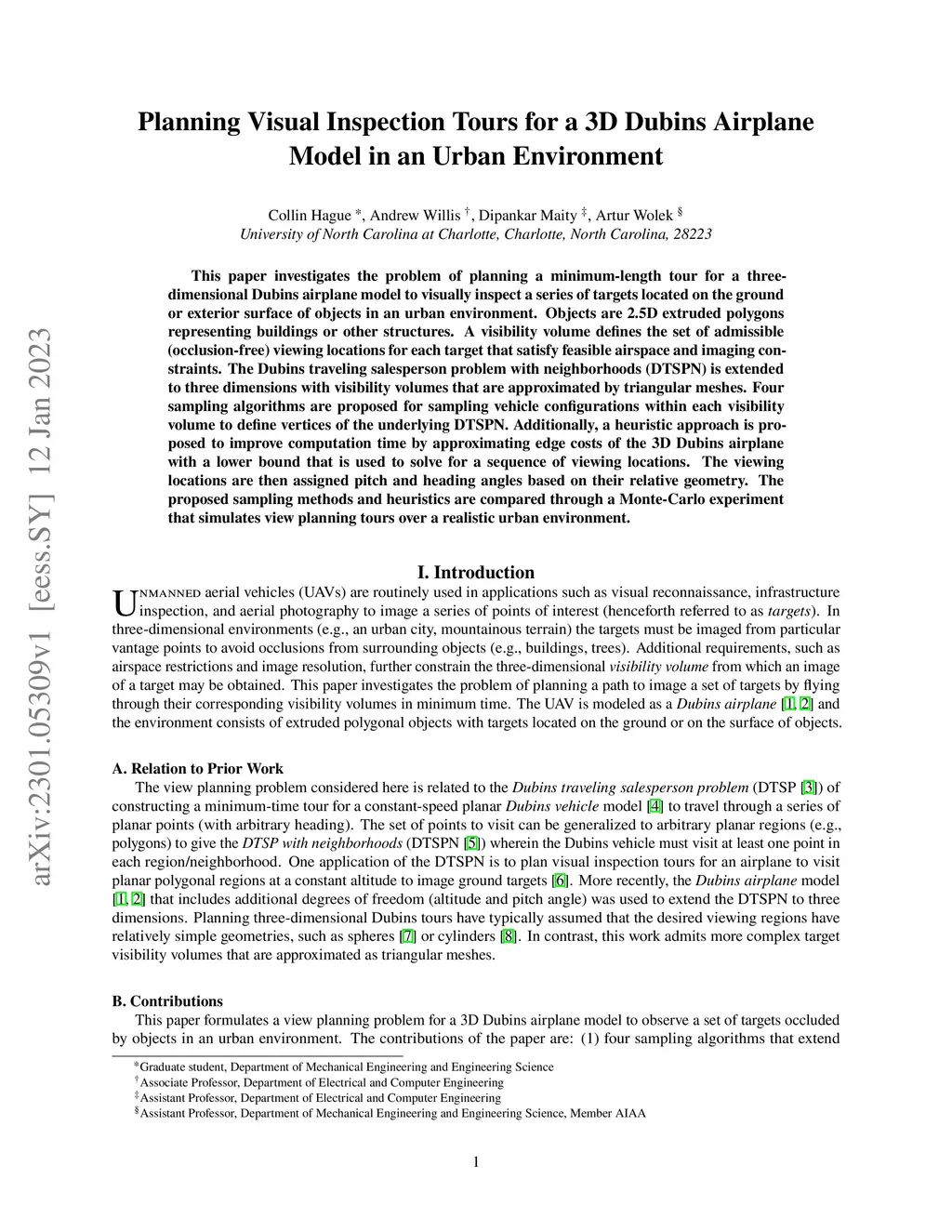 Planning Visual Inspection Tours for a 3D Dubins Airplane Model in an