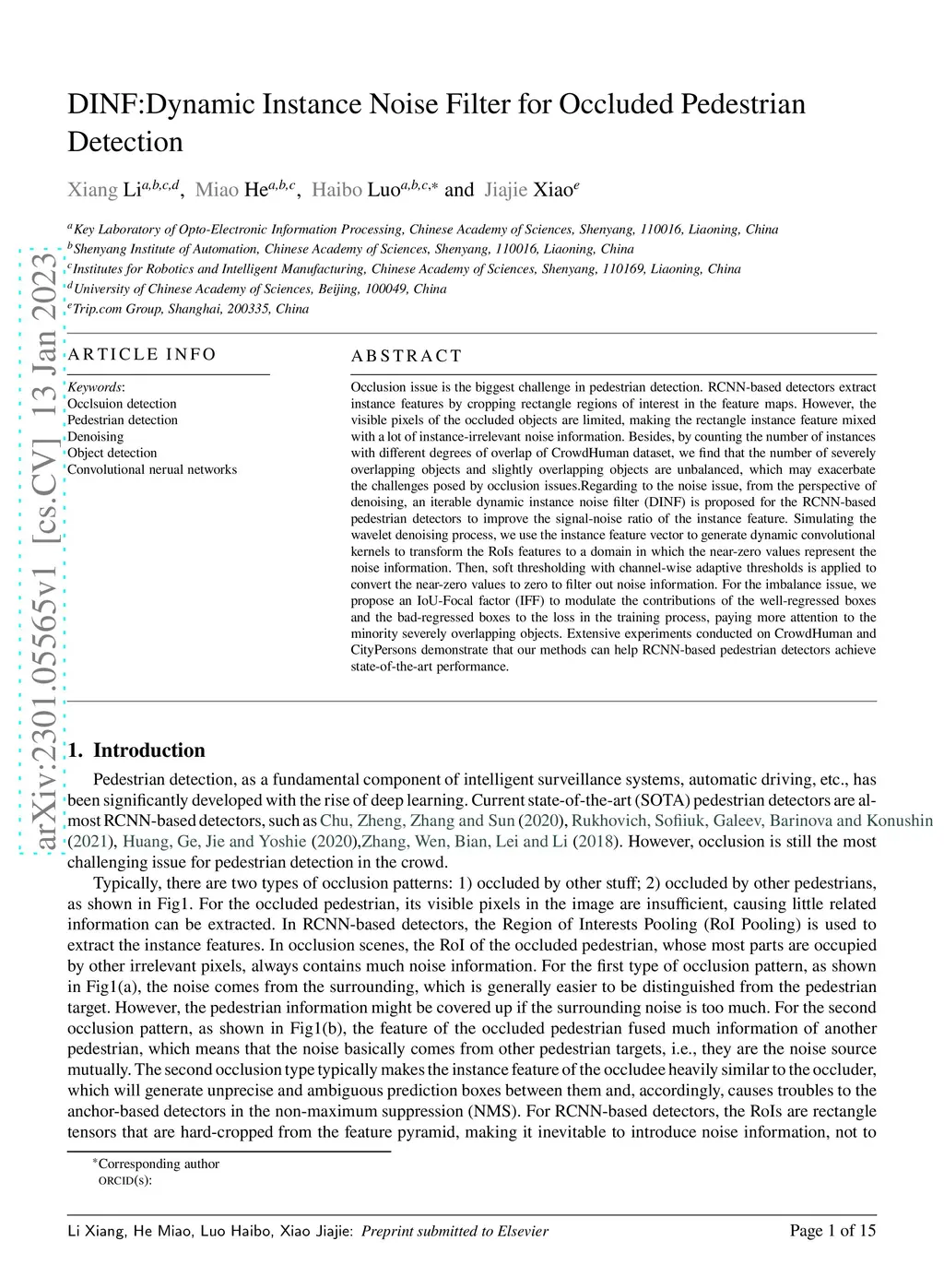 DINF: Dynamic Instance Noise Filter for Occluded Pedestrian Detection