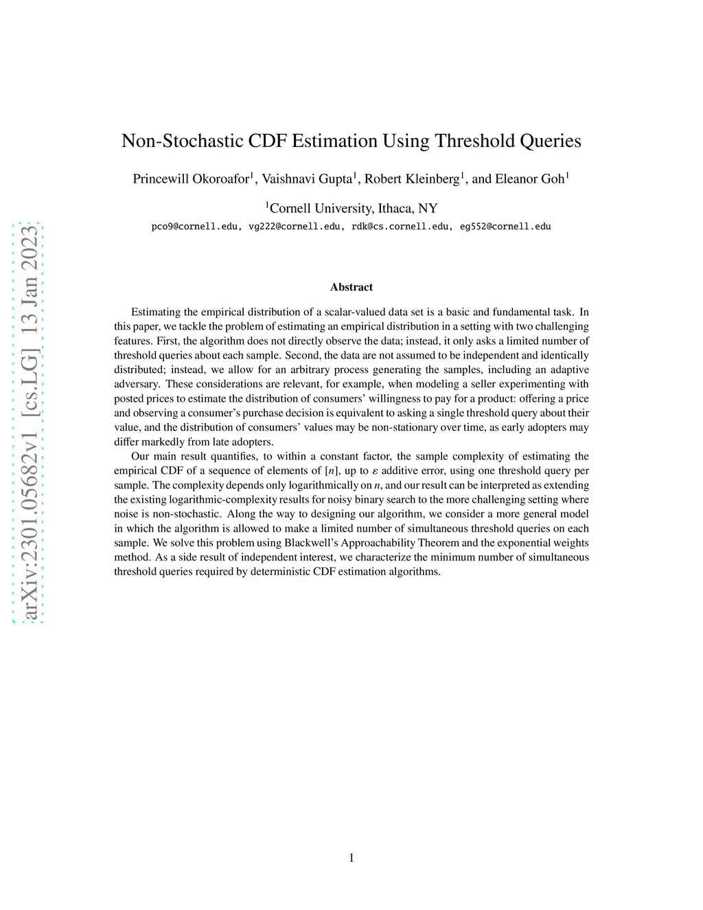 Non-Stochastic CDF Estimation Using Threshold Queries