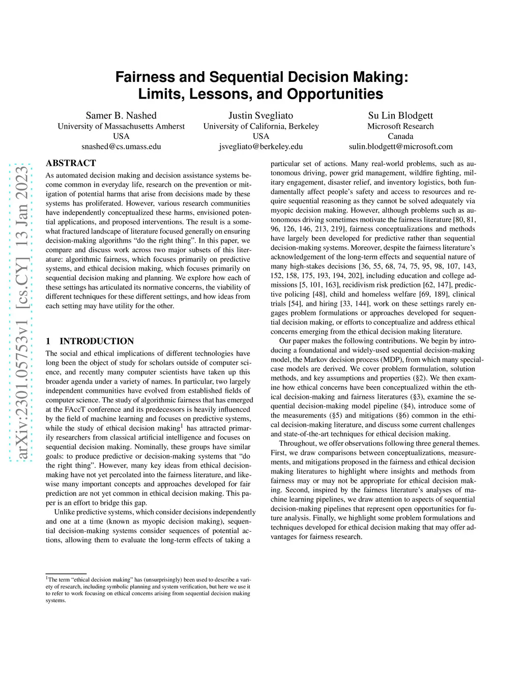 Fairness and Sequential Decision Making: Limits, Lessons, and