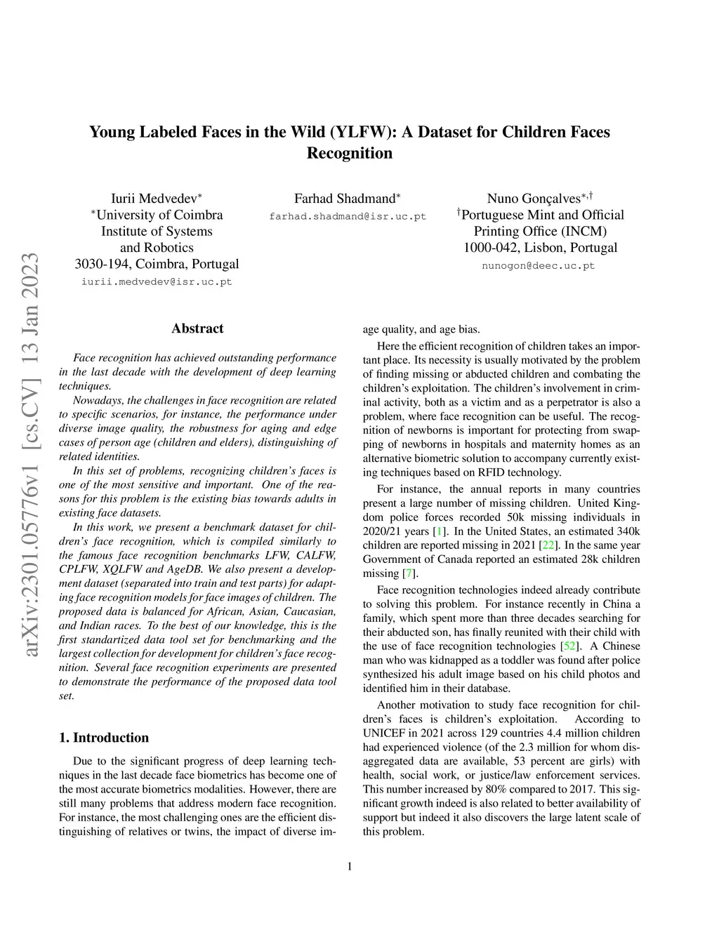 Young Labeled Faces in the Wild (YLFW): A Dataset for Children Faces