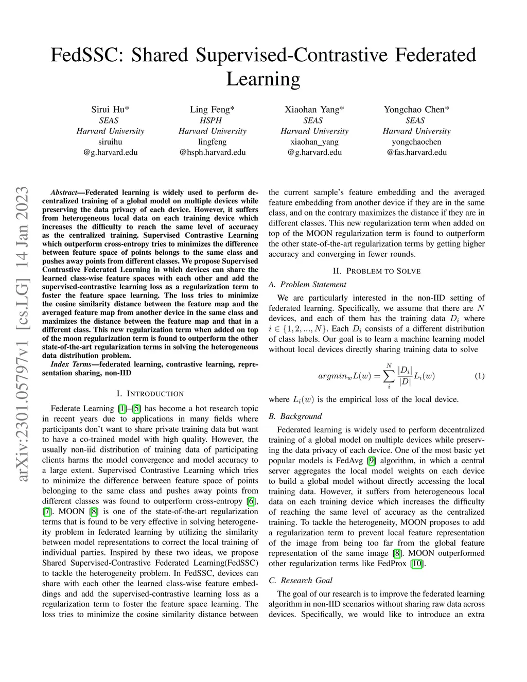 FedSSC: Shared Supervised-Contrastive Federated Learning