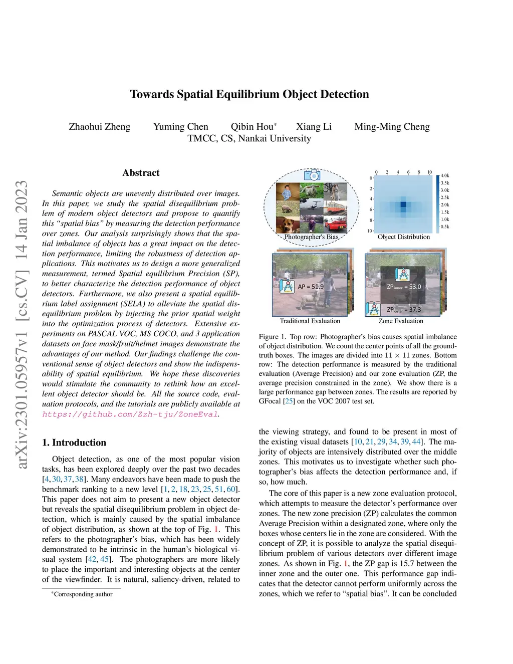 Semantic objects are unevenly distributed over images. In this paper, we study the spatial disequilibrium problem of modern object detectors and propose to quantify this ``spatial bias'' by measuring the detection performance over zones. Our analysis surprisingly shows that the spatial imbalance of objects has a great impact on the detection performance, limiting the robustness of detection applications. This motivates us to design a more generalized measurement, termed Spatial equilibrium Precision (SP), to better characterize the detection performance of object detectors. Furthermore, we also present a spatial equilibrium label assignment (SELA) to alleviate the spatial disequilibrium problem by injecting the prior spatial weight into the optimization process of detectors. Extensive experiments on PASCAL VOC, MS COCO, and 3 application datasets on face mask/fruit/helmet images demonstrate the advantages of our method. Our findings challenge the conventional sense of object detectors and show the indispensability of spatial equilibrium. We hope these discoveries would stimulate the community to rethink how an excellent object detector should be. All the source code, evaluation protocols, and the tutorials are publicly available at https://github.com/Zzh-tju/ZoneEval