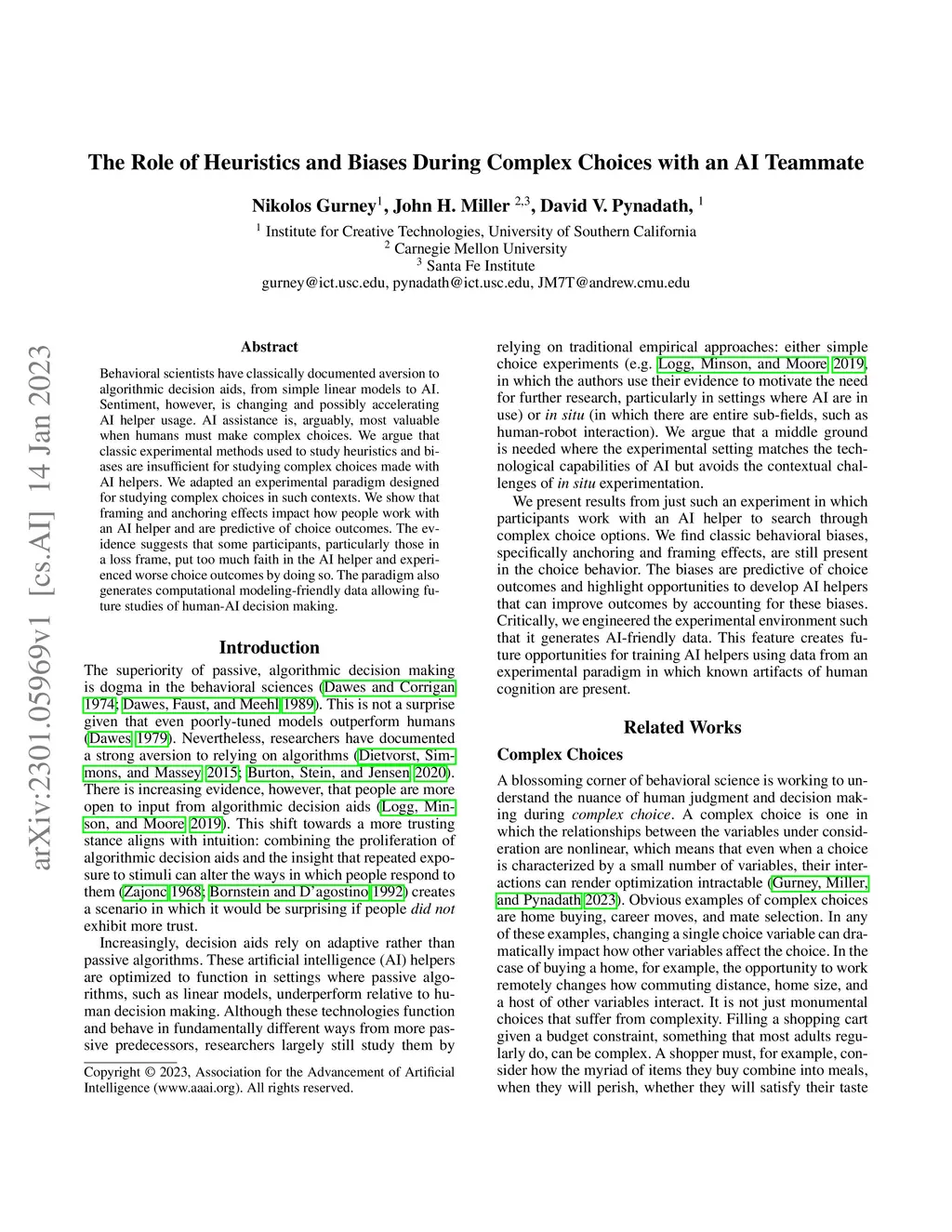 The Role of Heuristics and Biases During Complex Choices with an AI