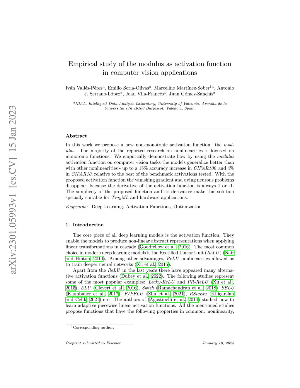 In this work we propose a new non-monotonic activation function: the modulus. The majority of the reported research on nonlinearities is focused on monotonic functions. We empirically demonstrate how by using the modulus activation function on computer vision tasks the models generalize better than with other nonlinearities - up to a 15% accuracy increase in CIFAR100 and 4% in CIFAR10, relative to the best of the benchmark activations tested. With the proposed activation function the vanishing gradient and dying neurons problems disappear, because the derivative of the activation function is always 1 or -1. The simplicity of the proposed function and its derivative make this solution specially suitable for TinyML and hardware applications.