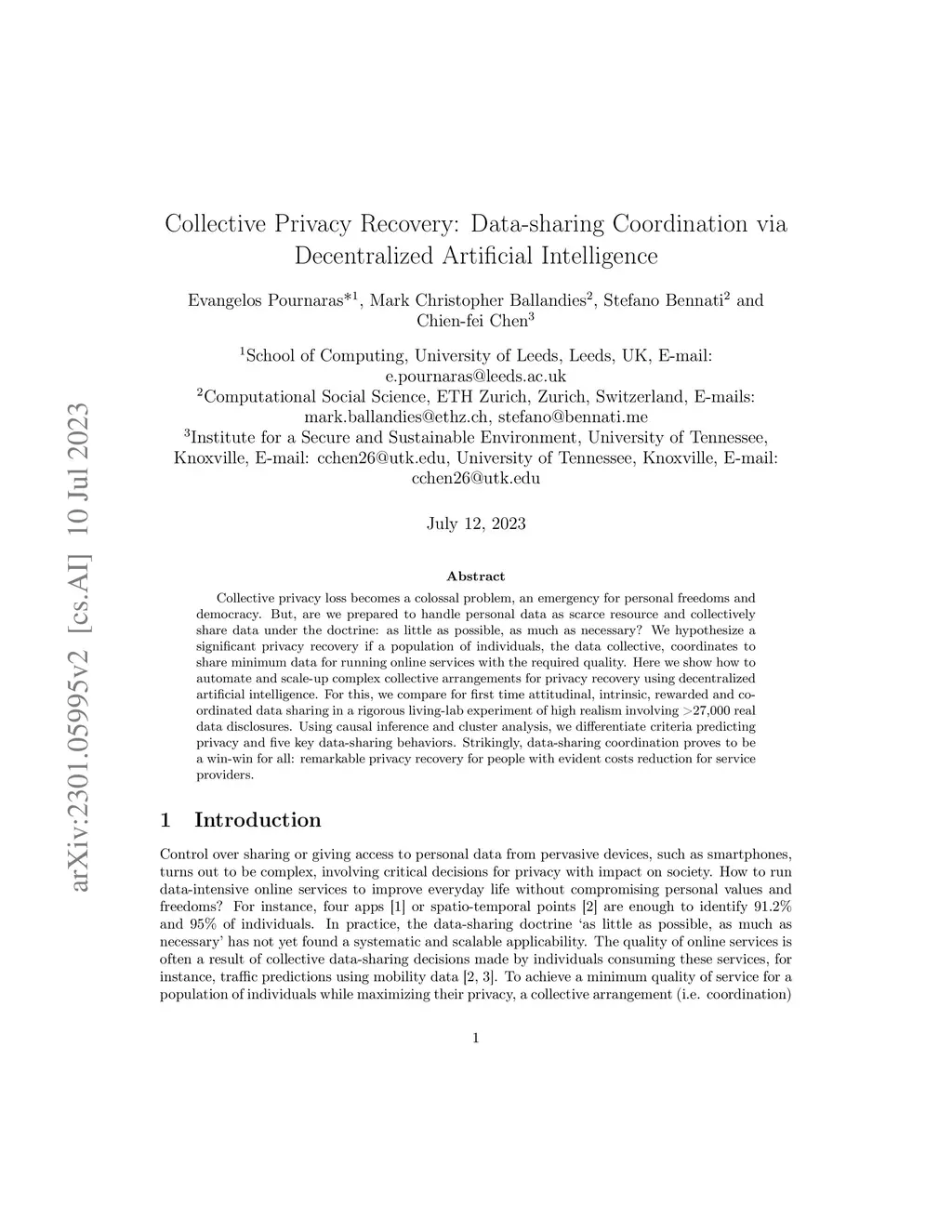 Collective privacy loss becomes a colossal problem, an emergency for personal freedoms and democracy. But, are we prepared to handle personal data as scarce resource and collectively share data under the doctrine: as little as possible, as much as necessary? We hypothesize a significant privacy recovery if a population of individuals, the data collective, coordinates to share minimum data for running online services with the required quality. Here we show how to automate and scale-up complex collective arrangements for privacy recovery using decentralized artificial intelligence. For this, we compare for first time attitudinal, intrinsic, rewarded and coordinated data sharing in a rigorous living-lab experiment of high realism involving >27,000 real data disclosures. Using causal inference and cluster analysis, we differentiate criteria predicting privacy and five key data-sharing behaviors. Strikingly, data-sharing coordination proves to be a win-win for all: remarkable privacy recovery for people with evident costs reduction for service providers.