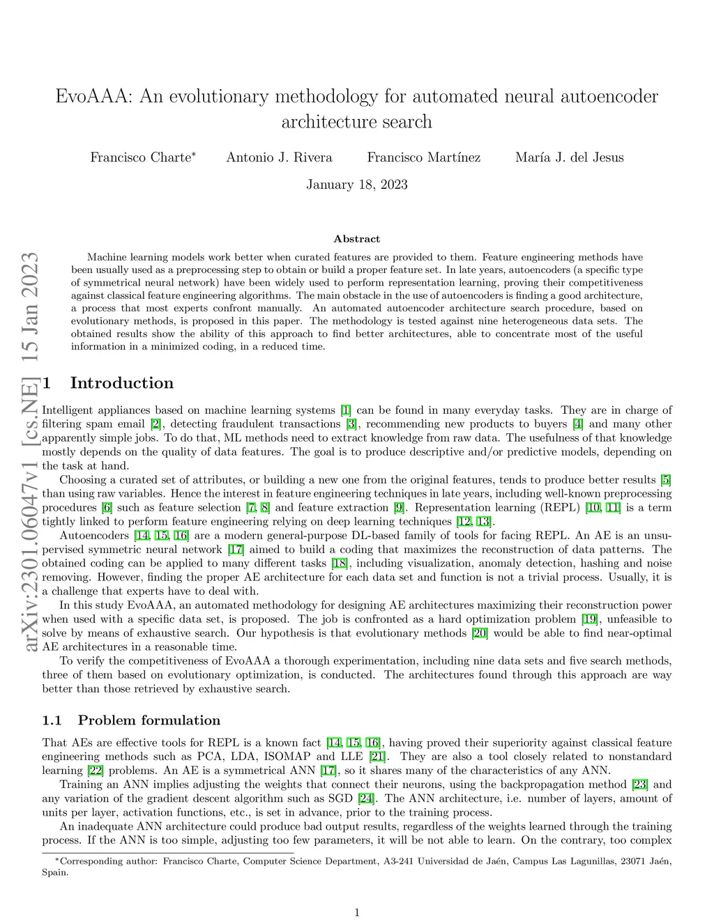 EvoAAA: An evolutionary methodology for automated \neural autoencoder