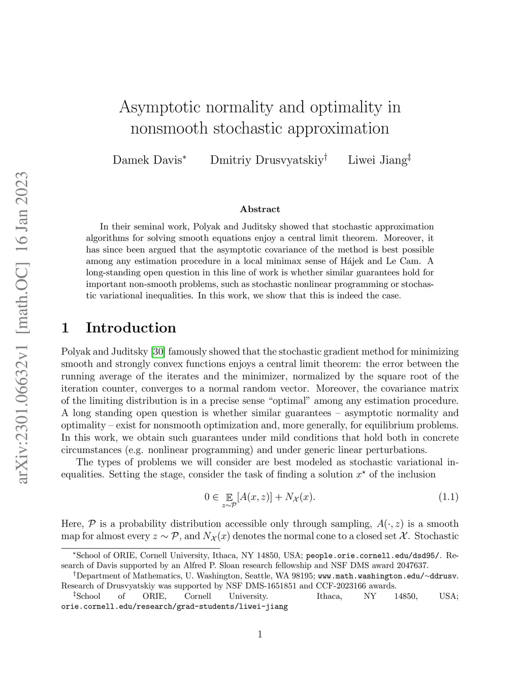 Asymptotic normality and optimality in nonsmooth stochastic