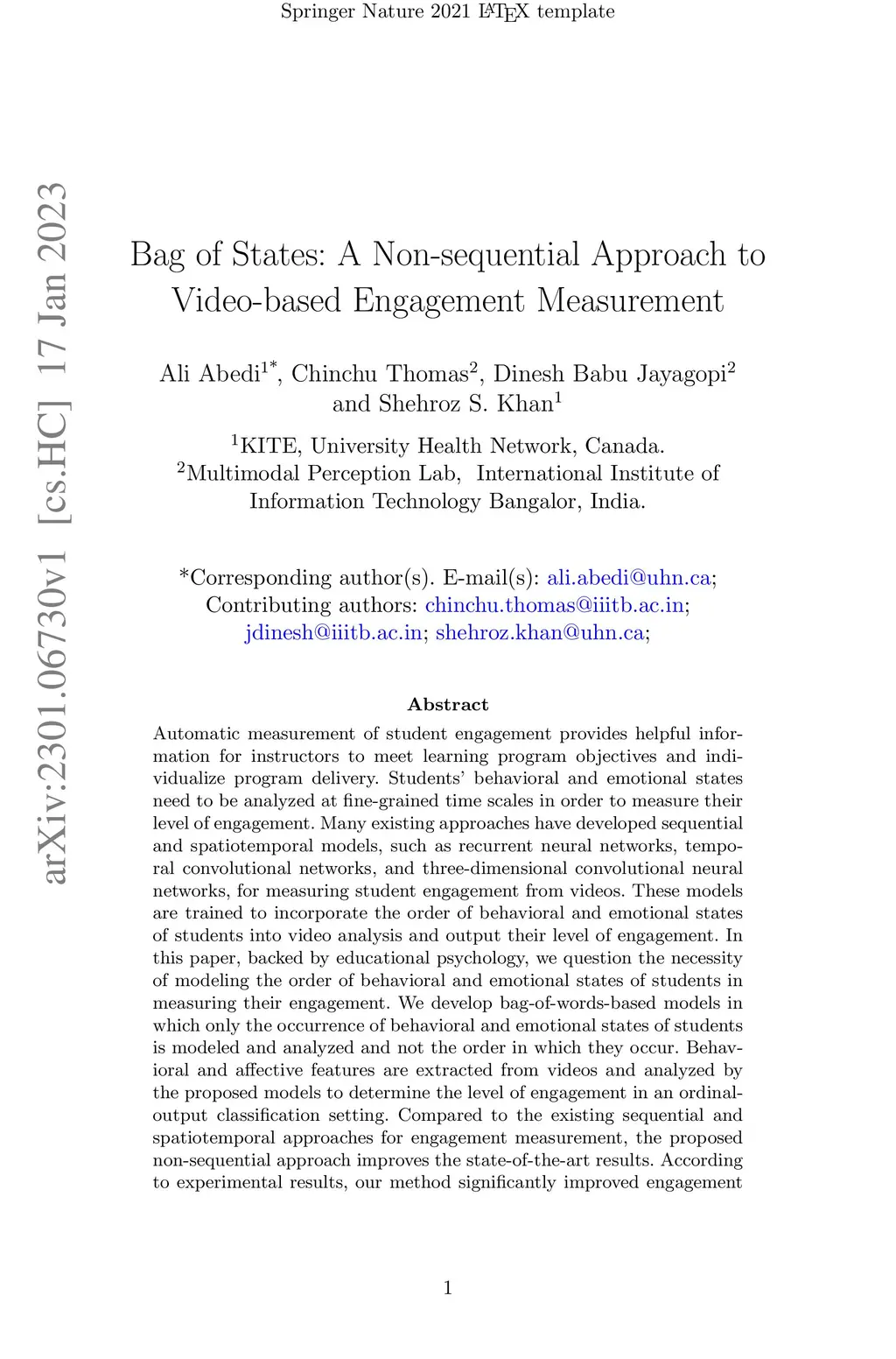 Bag of States: A Non-sequential Approach to Video-based Engagement