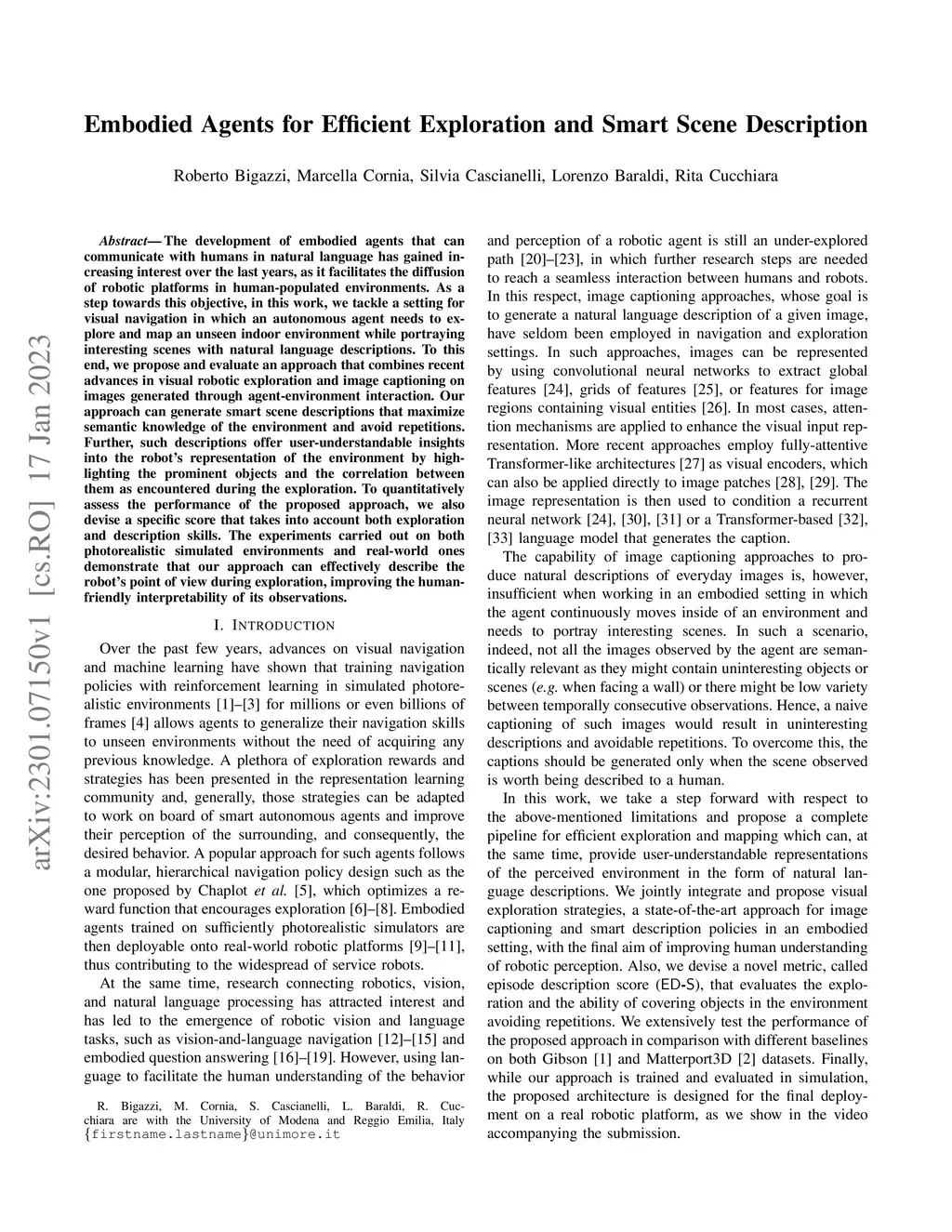 Embodied Agents for Efficient Exploration and Smart Scene Description