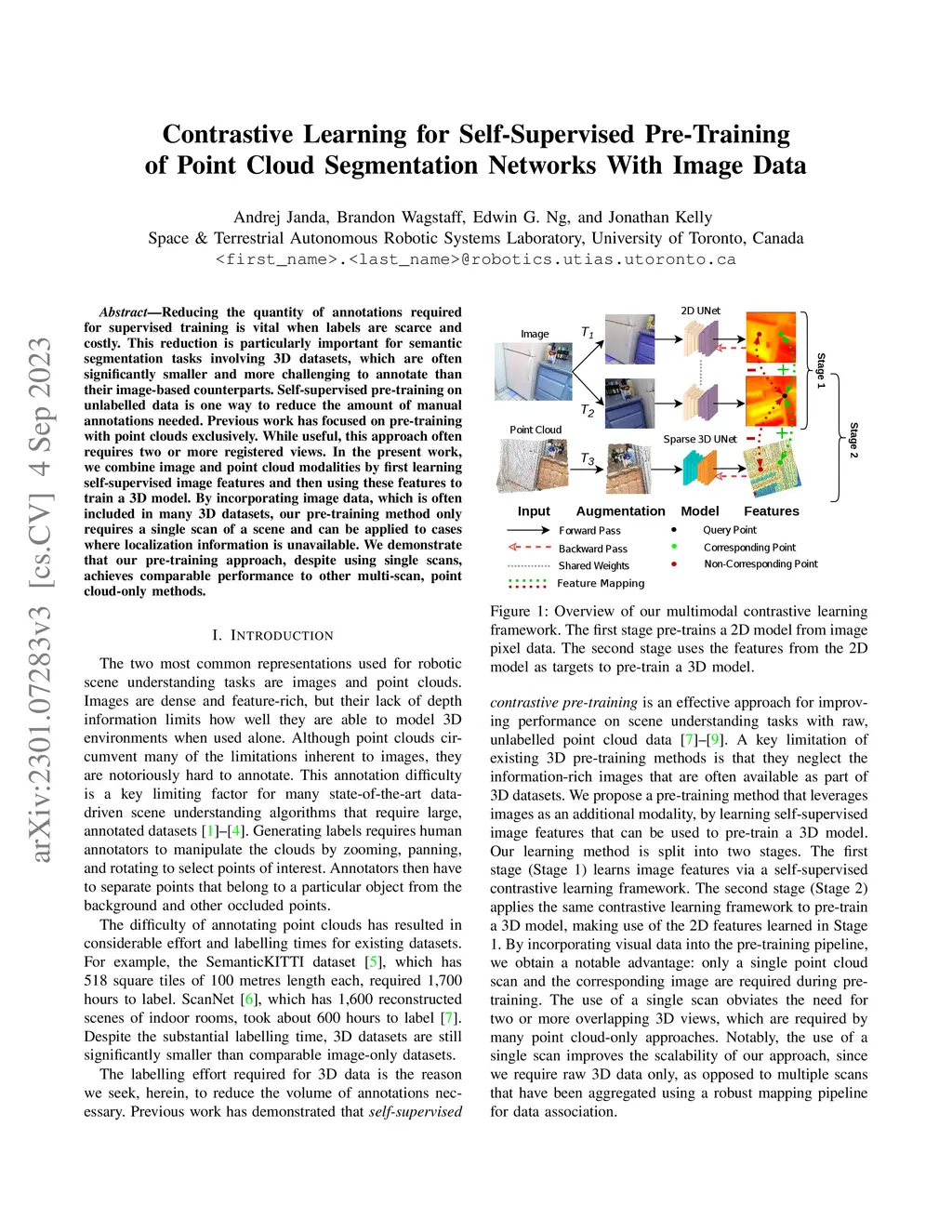 Contrastive Learning for Self-Supervised Pre-Training of Point Cloud Segmentation Networks With Image Data