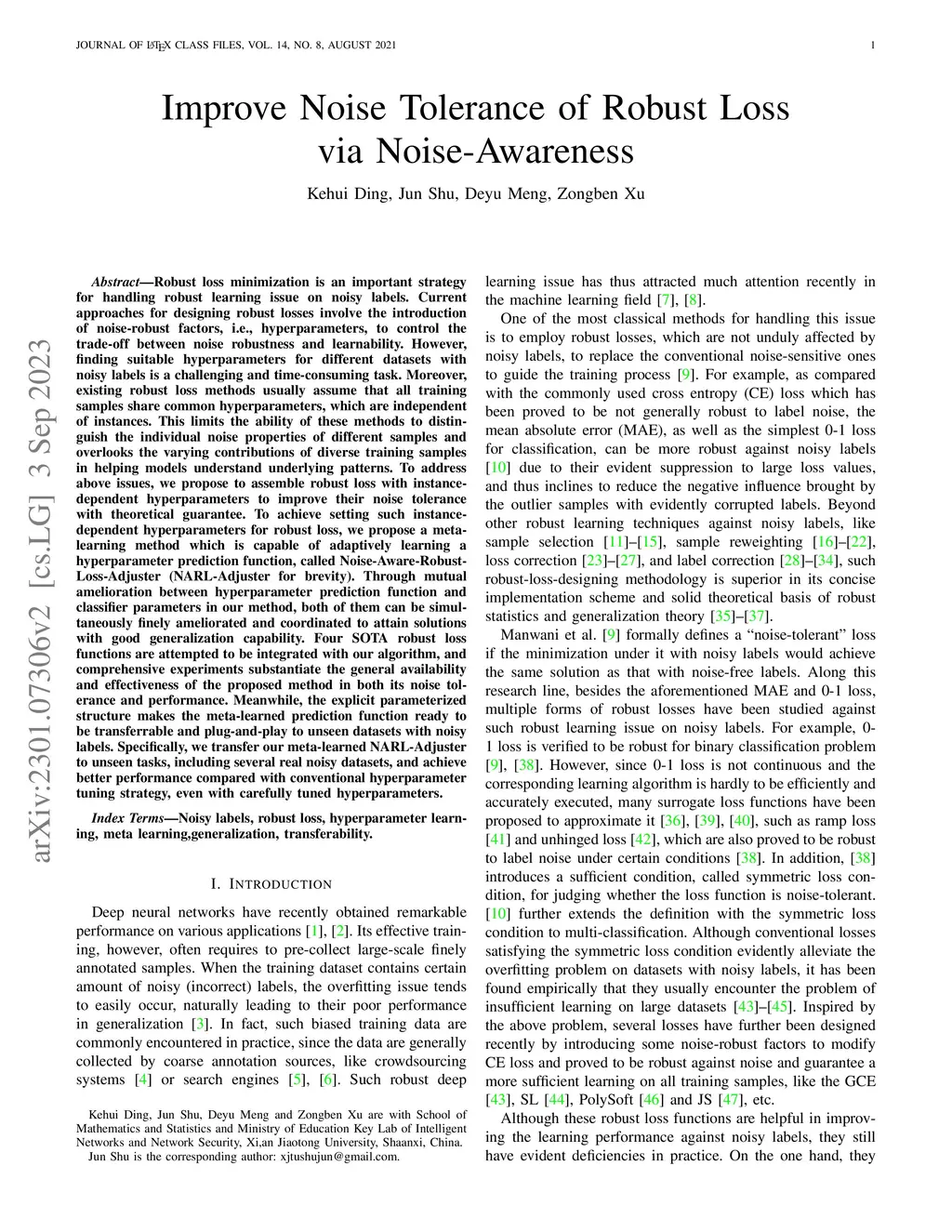 Robust loss minimization is an important strategy for handling robust learning issue on noisy labels. Current approaches for designing robust losses involve the introduction of noise-robust factors, i.e., hyperparameters, to control the trade-off between noise robustness and learnability. However, finding suitable hyperparameters for different datasets with noisy labels is a challenging and time-consuming task. Moreover, existing robust loss methods usually assume that all training samples share common hyperparameters, which are independent of instances. This limits the ability of these methods to distinguish the individual noise properties of different samples and overlooks the varying contributions of diverse training samples in helping models understand underlying patterns. To address above issues, we propose to assemble robust loss with instance-dependent hyperparameters to improve their noise tolerance with theoretical guarantee. To achieve setting such instance-dependent hyperparameters for robust loss, we propose a meta-learning method which is capable of adaptively learning a hyperparameter prediction function, called Noise-Aware-Robust-Loss-Adjuster (NARL-Adjuster for brevity). Through mutual amelioration between hyperparameter prediction function and classifier parameters in our method, both of them can be simultaneously finely ameliorated and coordinated to attain solutions with good generalization capability. Four SOTA robust loss functions are attempted to be integrated with our algorithm, and comprehensive experiments substantiate the general availability and effectiveness of the proposed method in both its noise tolerance and performance.