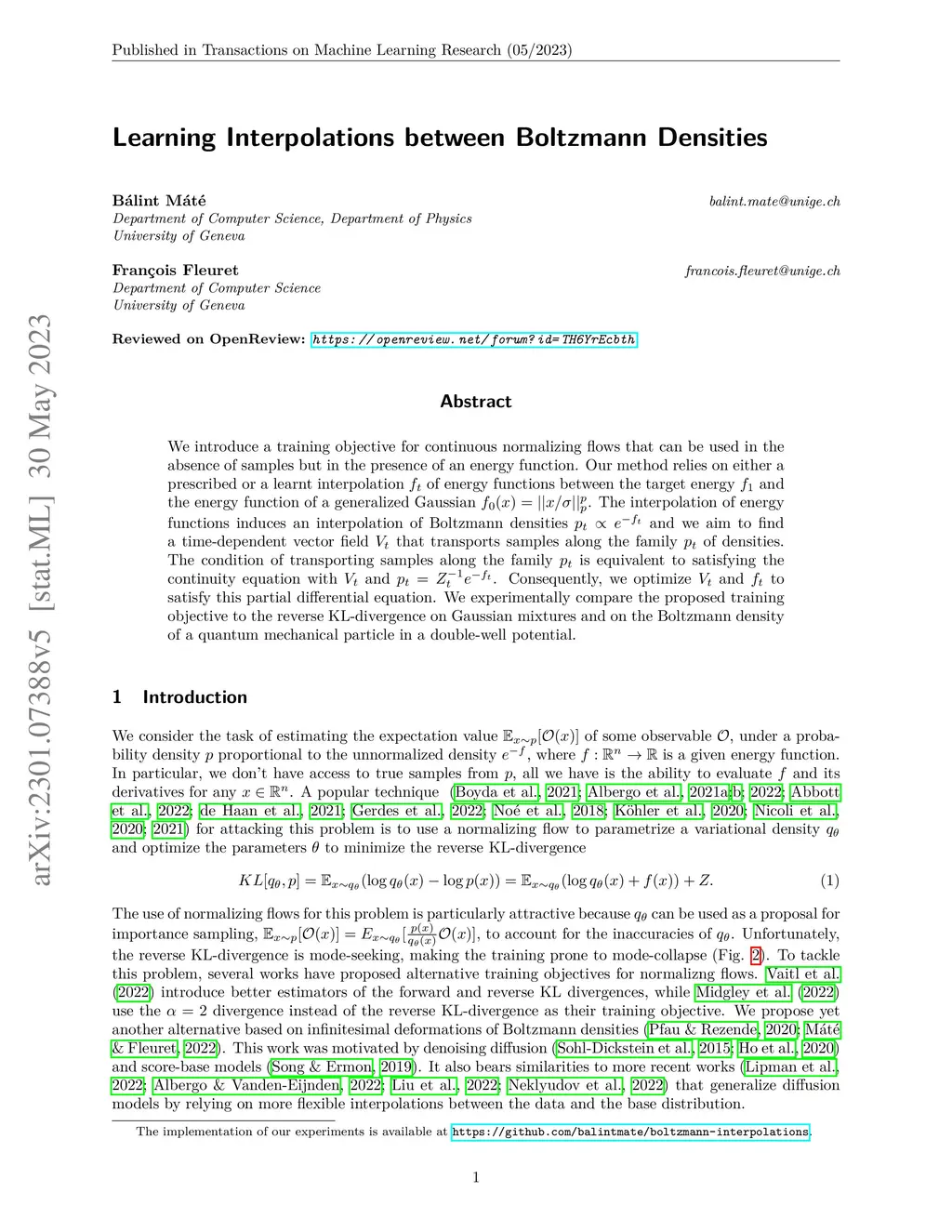 Learning Interpolations between Boltzmann Densities