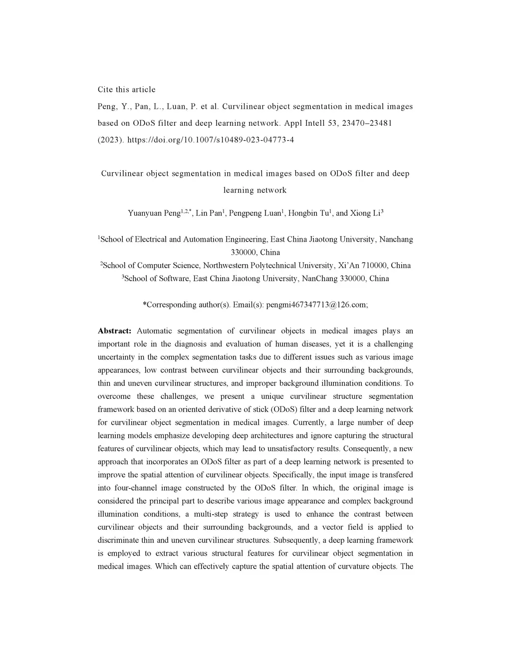 Automatic segmentation of curvilinear objects in medical images plays an important role in the diagnosis and evaluation of human diseases, yet it is a challenging uncertainty in the complex segmentation tasks due to different issues such as various image appearances, low contrast between curvilinear objects and their surrounding backgrounds, thin and uneven curvilinear structures, and improper background illumination conditions. To overcome these challenges, we present a unique curvilinear structure segmentation framework based on an oriented derivative of stick (ODoS) filter and a deep learning network for curvilinear object segmentation in medical images. Currently, a large number of deep learning models emphasize developing deep architectures and ignore capturing the structural features of curvilinear objects, which may lead to unsatisfactory results. Consequently, a new approach that incorporates an ODoS filter as part of a deep learning network is presented to improve the spatial attention of curvilinear objects. Specifically, the input image is transfered into four-channel image constructed by the ODoS filter. In which, the original image is considered the principal part to describe various image appearance and complex background illumination conditions, a multi-step strategy is used to enhance the contrast between curvilinear objects and their surrounding backgrounds, and a vector field is applied to discriminate thin and uneven curvilinear structures. Subsequently, a deep learning framework is employed to extract various structural features for curvilinear object segmentation in medical images. The performance of the computational model is validated in experiments conducted on the publicly available DRIVE, STARE and CHASEDB1 datasets. The experimental results indicate that the presented model yields surprising results compared with those of some state-of-the-art methods.