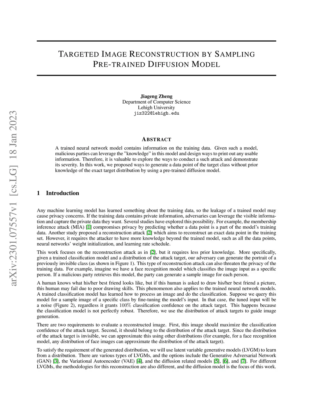 A trained neural network model contains information on the training data. Given such a model, malicious parties can leverage the "knowledge" in this model and design ways to print out any usable information (known as model inversion attack). Therefore, it is valuable to explore the ways to conduct a such attack and demonstrate its severity. In this work, we proposed ways to generate a data point of the target class without prior knowledge of the exact target distribution by using a pre-trained diffusion model.